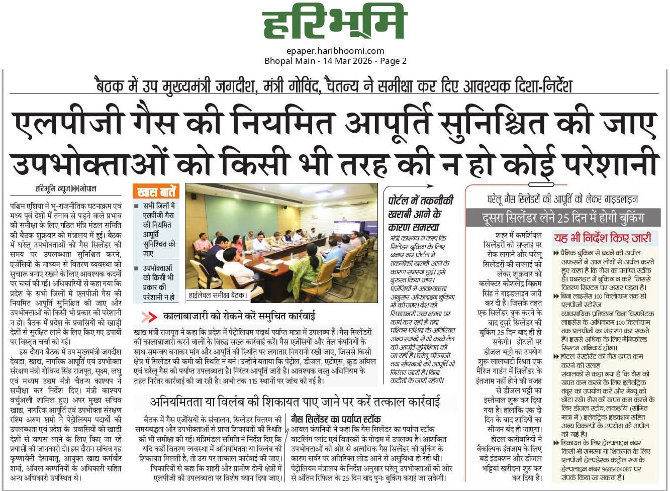 एलपीजी गैस की नियमित आपूर्ति सुनिश्चित की जाएं उपभोक्ताओं को किसी भी तरह की न हो कोई परेशानी