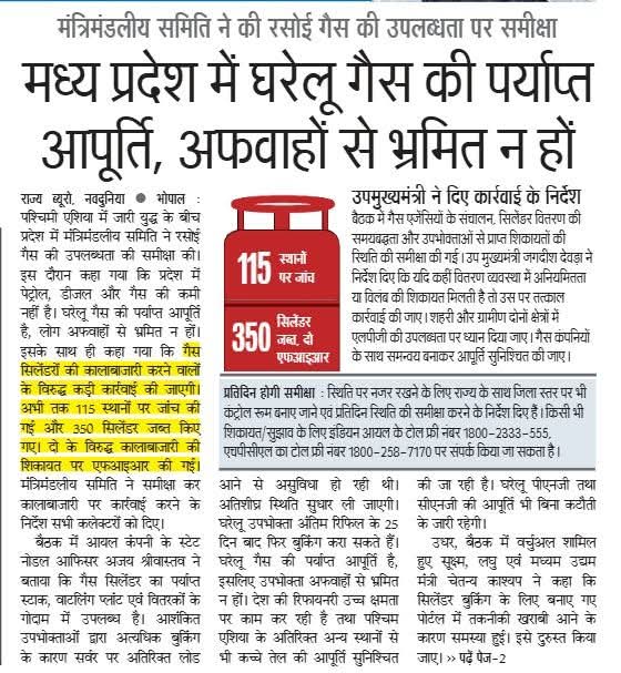 🔹मंत्रिमंडल समिति ने की पेट्रोलियम पदार्थों की आपूर्ति एवं वितरण की समीक्षा