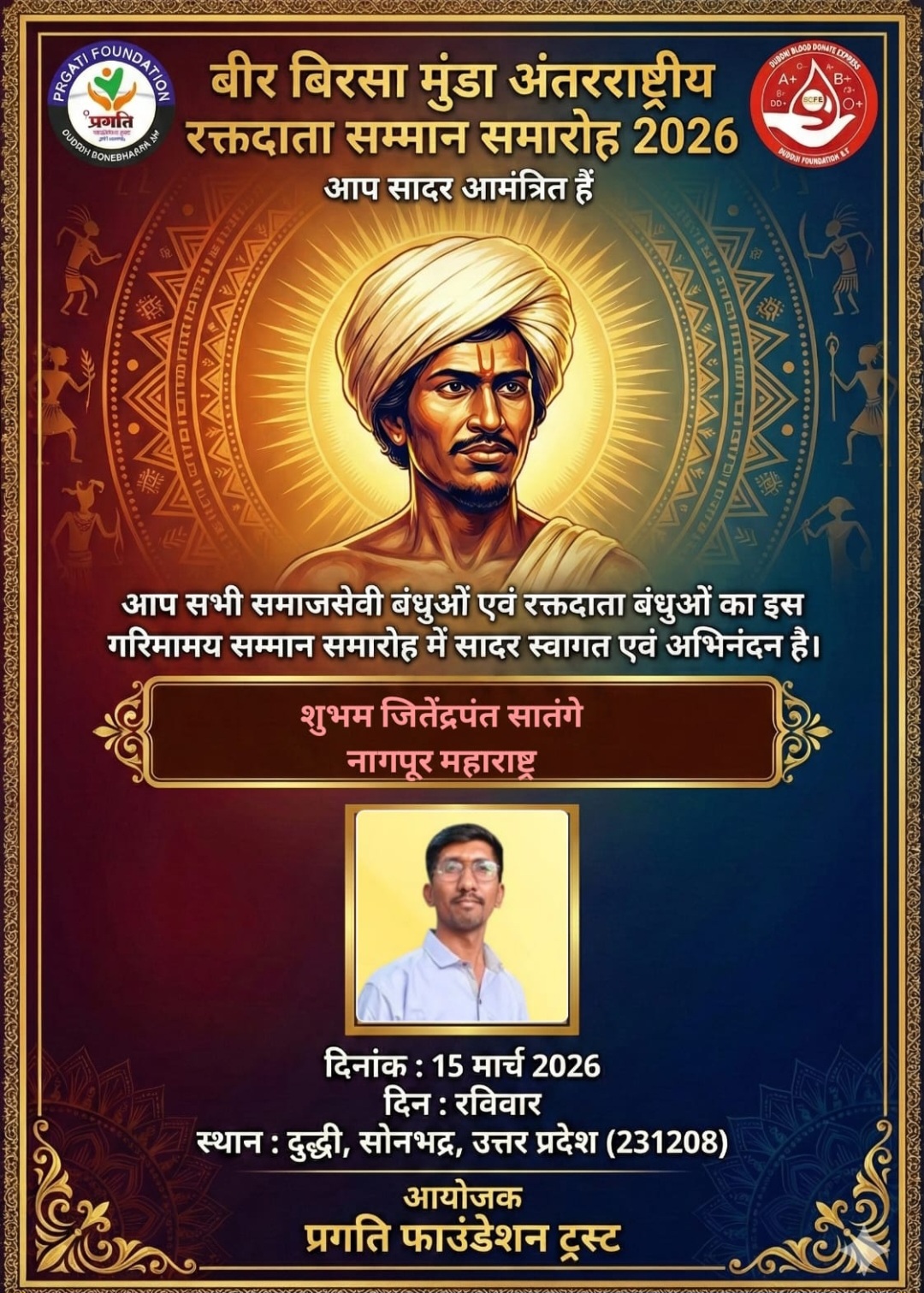 समाजसेवेतील उल्लेखनीय कार्याबद्दल शुभम सातंगे यांची ‘वीर बिरसा मुंडा आंतरराष्ट्रीय पुरस्कार 2026’ साठी निवड....!