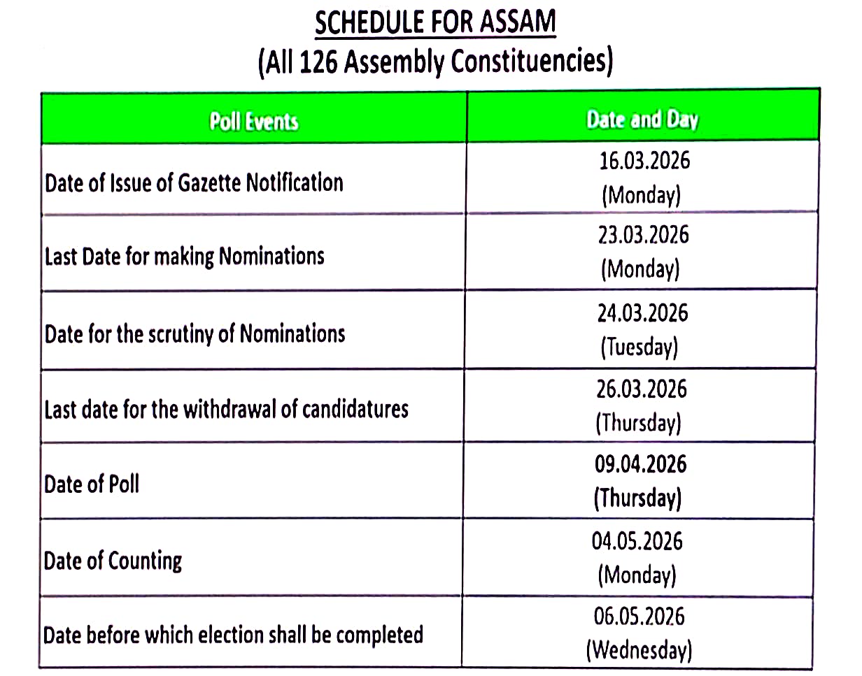 অসম বিধানসভাৰ নিৰ্বাচন-২০২৬ৰ তাৰিখ ঘোষণা