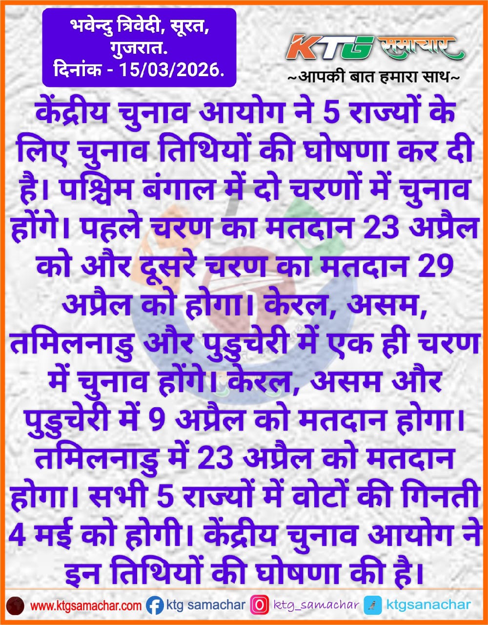 केंद्रीय चुनाव आयोग ने पांच राज्यों के लिए चुनाव तिथियों की घोषणा कर दी है।