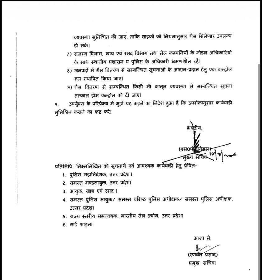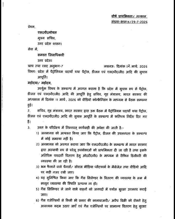 #उत्तरप्रदेश के चीफ सेक्रेटरी ने प्रदेश में LPG #गैस की किल्लत को लेकर सभी जिलाधिकारियों को #आदेश जारी किए है, जिसके तहत गैस एजेंसीयों को पर्याप्त सुरक्षा देने, वितरण को सुचारू रूप से लिए के लिए खाद्य एवं रसद विभाग व राजस्व विभाग के अधिकारियों की टीम को भ्रमणशील रखा जाए, भ्रामक सूचना फैलाने वालों पर कारवाही करने के निर्देश दिए गए हैं। #UttarPradesh #Lpccylinder #Lucknow #सिलेंडर #news