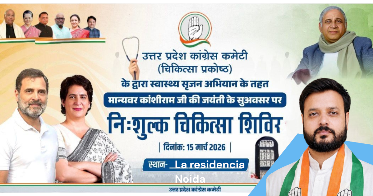 नोएडा। उत्तर प्रदेश कांग्रेस कमेटी के चिकित्सा प्रकोष्ठ द्वारा चलाए जा रहे स्वास्थ्य सृजन अभियान के अंतर्गत मान्यवर कांशीराम जी की जयंती के अवसर पर रविवार, 15 मार्च 2026 को नोएडा के La Residencia में एक निःशुल्क मेडिकल कैंप का आयोजन किया गया।