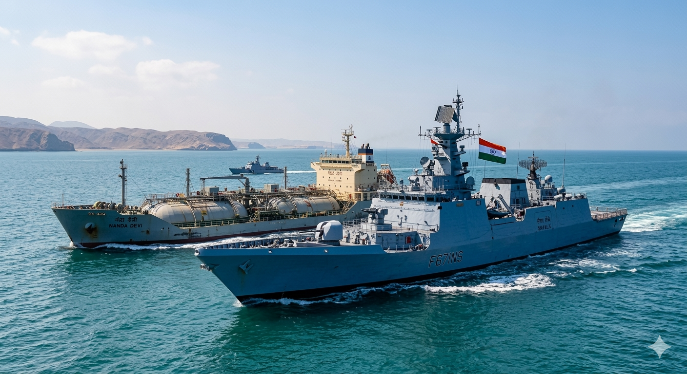 सूत्रों के अनुसार, खाड़ी क्षेत्र में बढ़ते खतरे को देखते हुए भारत ने होर्मुज के पास अपने दो शक्तिशाली युद्धपोत तैनात किए हैं। ये युद्धपोत भारतीय झंडे वाले जहाजों को सुरक्षा घेरा (Escort) प्रदान कर रहे हैं। भारतीय नौसेना का यह 'ऑपरेशन संकल्प' अब और भी सक्रिय हो गया है, ताकि देश की ऊर्जा सुरक्षा पर कोई आंच न आए।