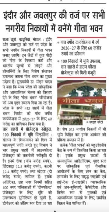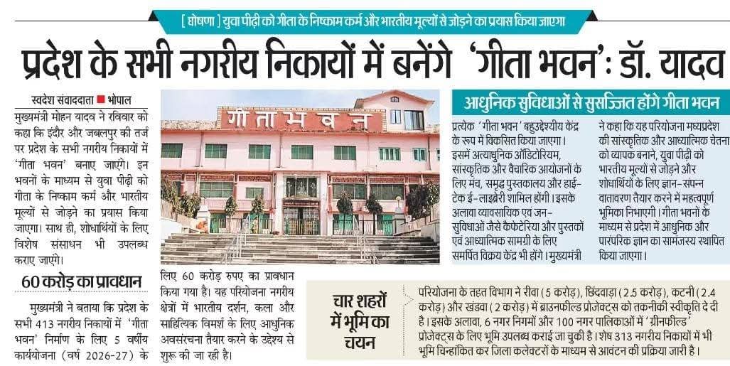 मध्यप्रदेश के सभी नगरीय निकायों में बनेंगे गीता भवन: मुख्यमंत्री डॉ मोहन यादव