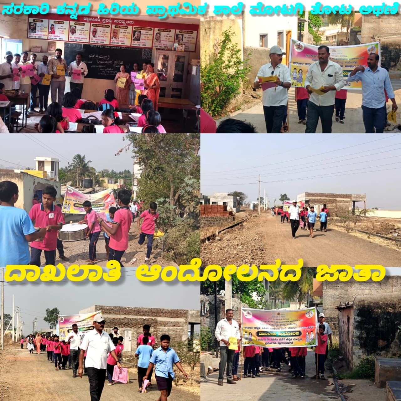 ಬೆಳಗಾವಿ ಜಿಲ್ಲೆ ಅಥಣಿ ತಾಲೂಕಿನಲ್ಲಿ ಶಿವಯೋಗಿ ನಗರದಲ್ಲಿ ಸರಕಾರಿ ಕನ್ನಡ ಹಿರಿಯ ಪಾಥಮಿಕ ಶಾಲೆ ಮೋಟಗಿ ತೋಟ ಶಾಲೆ ದಾಖಲಾತಿ ಶಿವಯೋಗಿ ನಗರದಲ್ಲಿ ಪ್ರಮುಖ ರಸ್ತೆಯ ಮೂಲಕ ಸಂಚರಿಸುತ್ತಾ ಘೋಷಣೆ ಕೂಗುತ್ತಾ ಮಕ್ಕಳನ್ನು ಶಾಲೆಗೆ ಕಳುಹಿಸಿ ವಿದ್ಯಾರ್ಥಿಗಳು ಆಂದೋಲನ ನಡೆಸಲಾಯಿತು