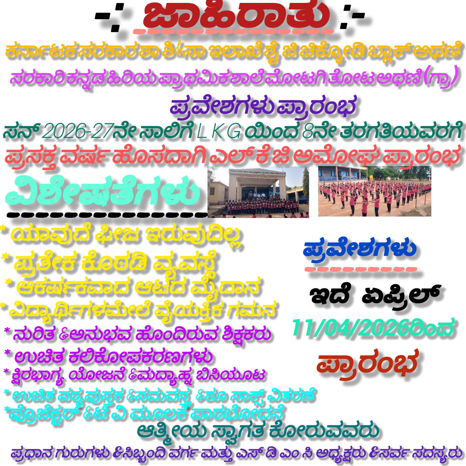 ನುರಿತ &ಅನುಭವ ಹೊಂದಿರುವ ಶಿಕ್ಷಕರು * ಉಚಿತ ಕಲಿಕೋಪಕರಣಗಳು * ಕ್ಷಿರಭಾಗ್ಯ ಯೋಜನೆ &ಮದ್ಯಾಹ್ನ ಬಿಸಿಯೂಟ *ಉಚಿತ ಪಠ್ಯಪುಸ್ತಕ ನಮನಪ್ಪ ಶಿಶೂ ಸಾಫ್ಟ್ ವಿತರಣೆ *ಪ್ರೊಜೆಕ್ಟ‌ರ್ಟಿವಿ ಮೂಲಕ ಪಾರಭೋಧನೆ ಆತ್ಮೀಯ ಸ್ವಾಗತ ಕೋರುವವರು ಪ್ರಧಾನ ಗುರುಗಳು &ಸಿಬ್ಬಂದಿ ವರ್ಗ ಮತ್ತು ಎಸ್ ಡಿ ಎಂ ಸಿ ಅಧ್ಯಕ್ಷರು &ಸರ್ವ ಸದಸ್ಯರು ಪ್ರವೇಶಗಳು ಏಪ್ರಿಲ್ 11/04/2026ರಿಂದ ಪ್ರಾರಂಭ