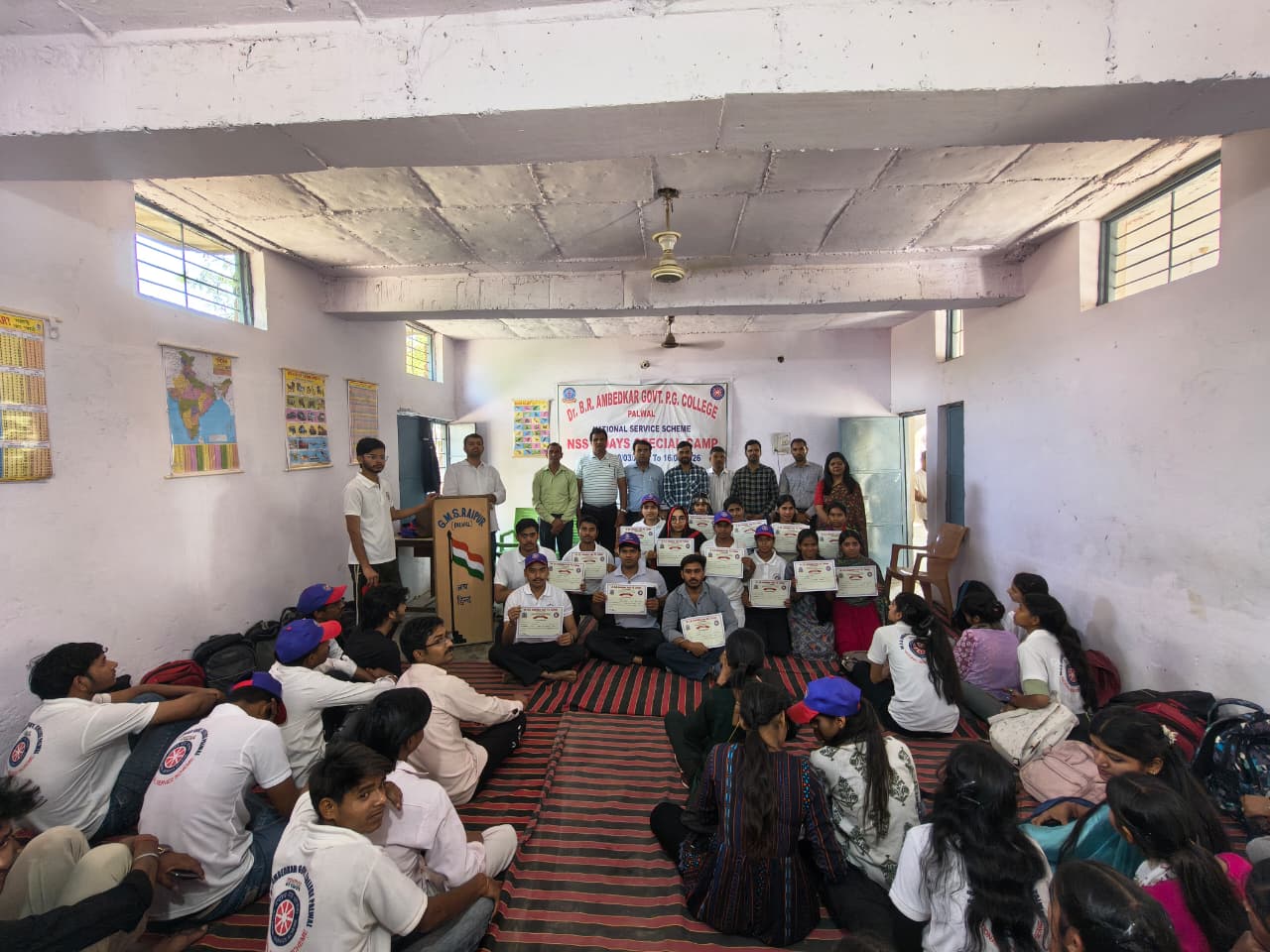 शिविर के समापन अवसर पर सभी एनएसएस स्वयंसेवकों को 7 दिवसीय विशेष शिविर के प्रमाण पत्र वितरित किए गए। इस दौरान श्रेष्ठ स्वयंसेवक (लड़कियों में) प्रिया (बी.ए. फाइनल वर्ष) और लड़कों में भरतपाल (बी.ए. प्रथम वर्ष) को चुना गया।