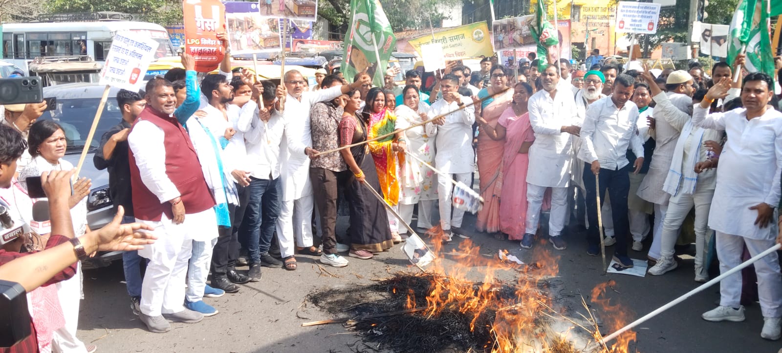 रसोई गैस की किल्लत, कालाबाजारी और कीमतों में बढ़ोतरी तथा जन विरोधी नीतियों के खिलाफ प्रधानमंत्री नरेंद्र मोदी और मुख्यमंत्री नीतीश कुमार का पुतला दहन