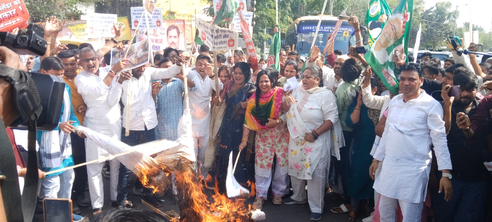 रसोई गैस की किल्लत, कालाबाजारी और कीमतों में बढ़ोतरी तथा जन विरोधी नीतियों के खिलाफ प्रधानमंत्री नरेंद्र मोदी और मुख्यमंत्री नीतीश कुमार का पुतला दहन राजद महिला प्रकोष्ठ की ओर से किया गया