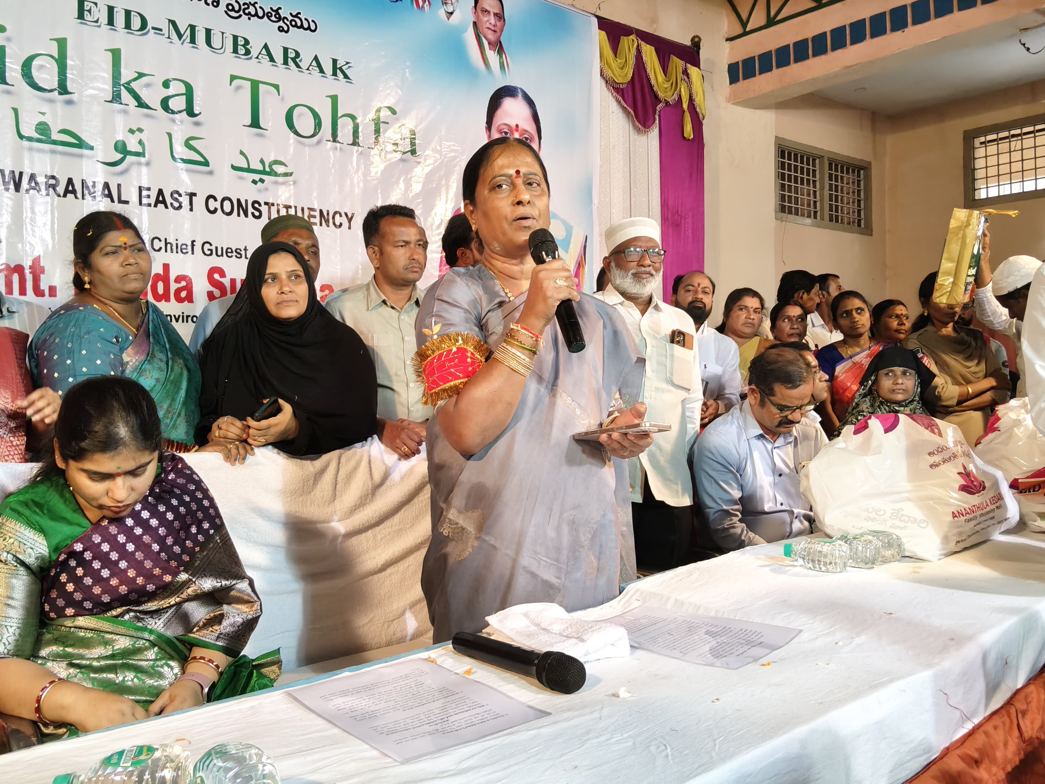రంజాన్ పర్వదినం సందర్భం గా వరంగల్ (తూర్పు) నియోజక వర్గ పరిధి లో బుధవారం క్రిస్టల్ గార్డెన్ ఫంక్షన్ హాల్ లో ఏర్పాటు చేసిన ఈద్ కా తోఫా కార్యక్రమానికి ముఖ్య అతిథిగా హాజరై ముస్లిం సోదరులకు బహుమతులను అందజేసిన రాష్ట్ర దేవాదాయ అటవీ పర్యావరణ శాఖ మంత్రి వర్యులు శ్రీమతి కొండా సురేఖ....