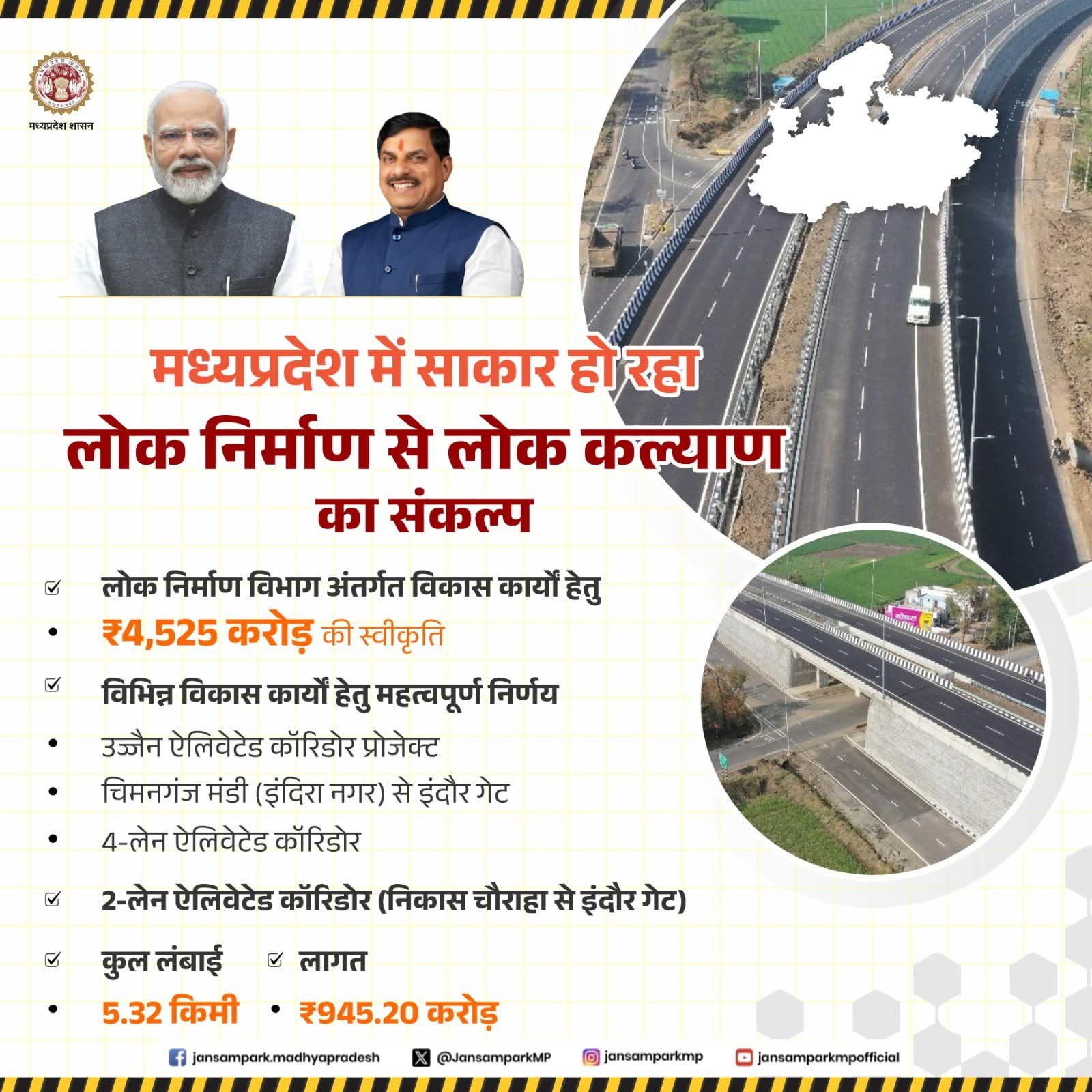 लोक निर्माण विभाग अंतर्गत विकास कार्यों हेतु ₹4,525 करोड़ की स्वीकृति