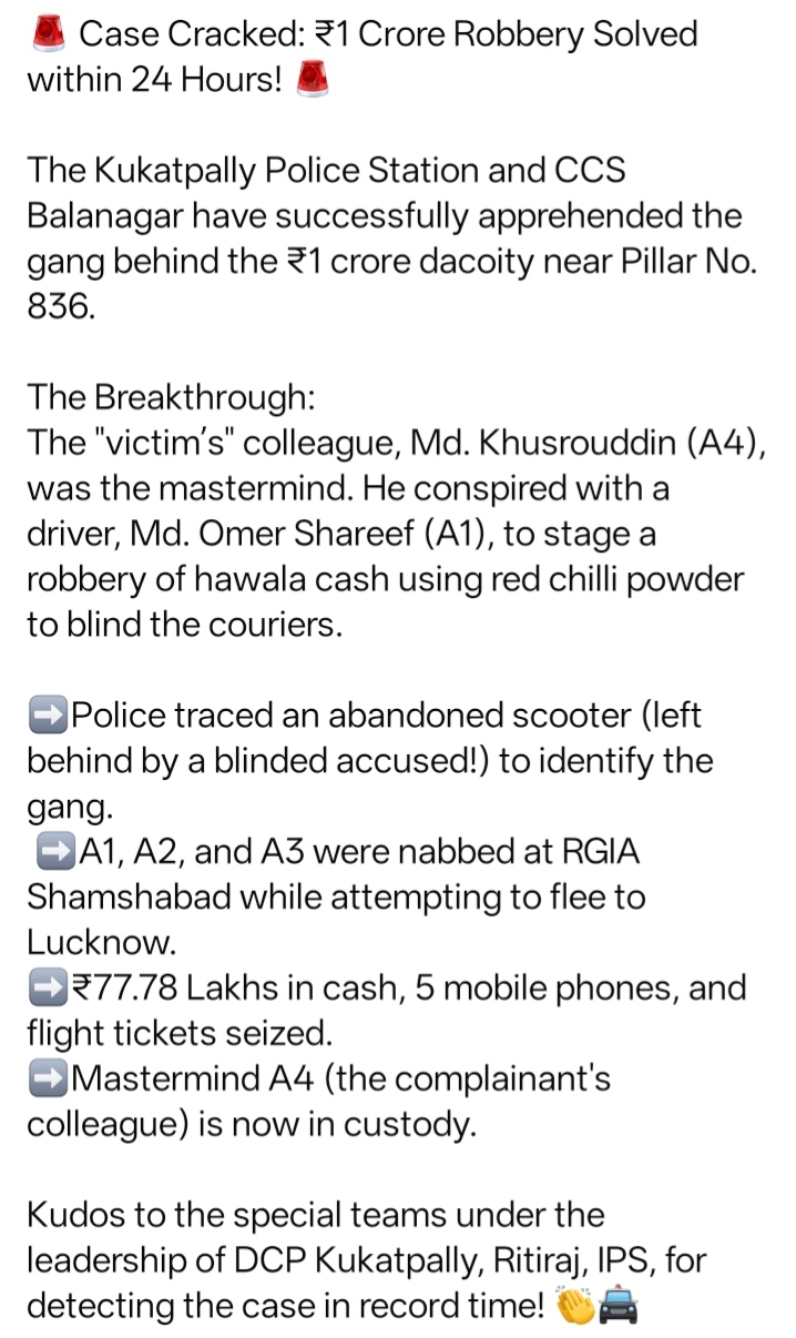 Case Cracked Rupees 1 Crore Robbery Solved Within 24 Hours Telangana Police