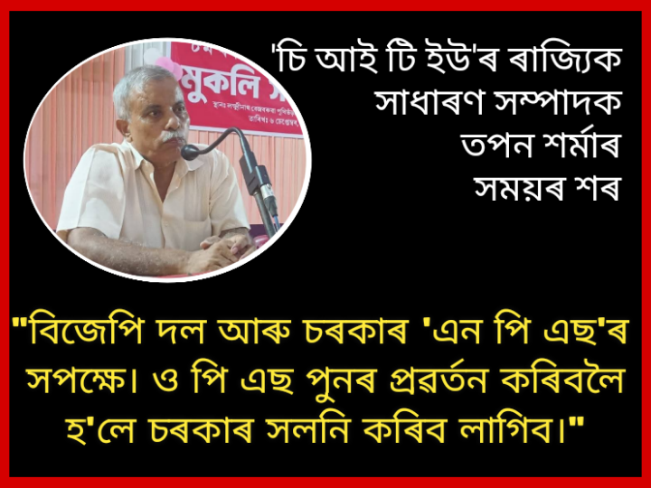 'চি আই টি ইউ'ৰ ৰাজ্যিক সাধাৰণ সম্পাদক তপন শৰ্মাৰ সময়ৰ শৰ