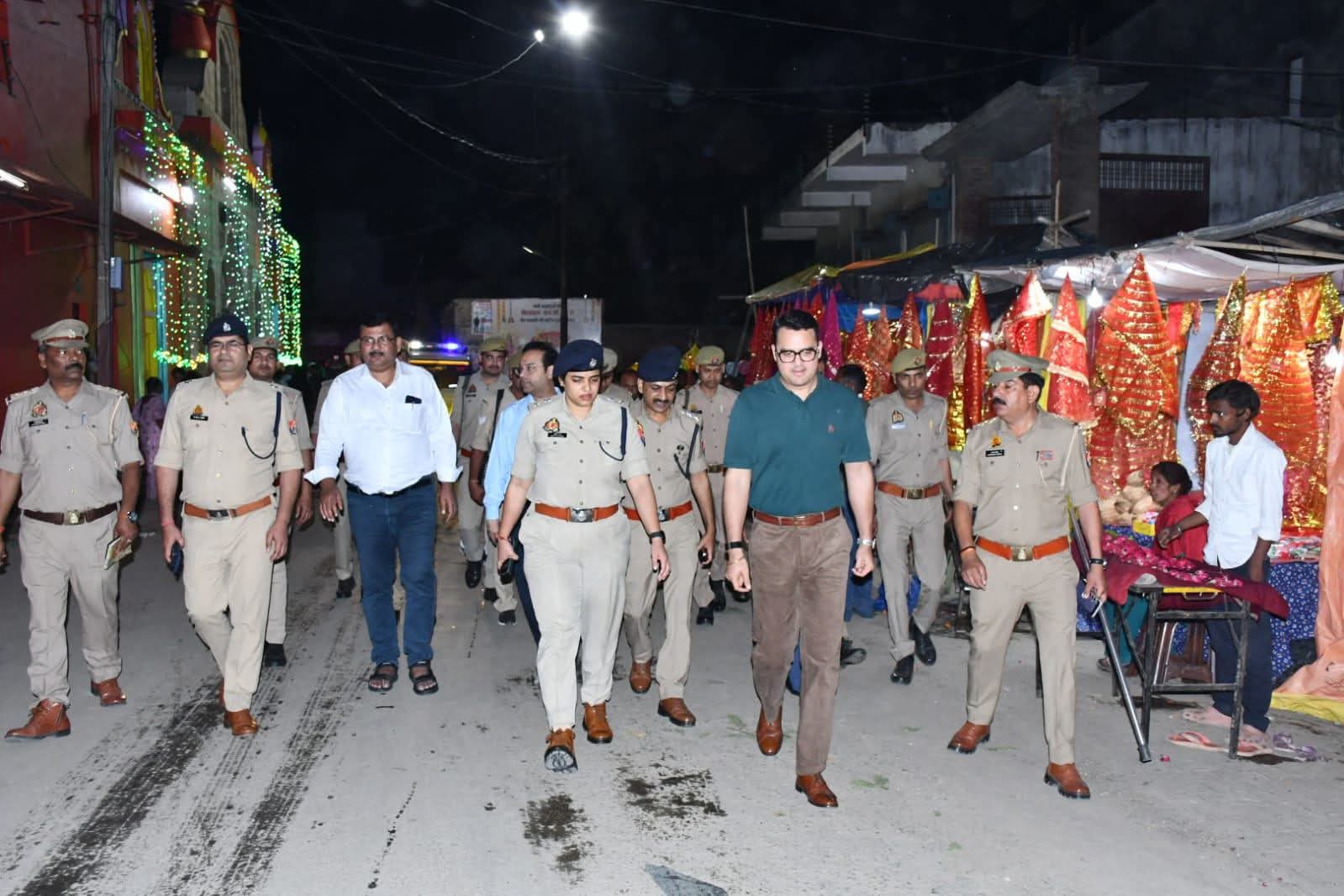 जिलाधिकारी बदायूँ श्री अवनीश राय तथा वरिष्ठ पुलिस अधीक्षक,बदायूँ सुश्री अंकिता शर्मा द्वारा संयुक्त रुप से त्यौहार चैत्र नवरात्रि व आगामी त्यौहार ईद-उल-फीतर के दृष्टिगत शहर क्षेत्र के मुख्य बाजारों सर्राफा बाजार एवं भीड़-भाड़ वाले व्यस्तम स्थानों पर पैदल गश्त की गयी। आज दिनाँक 19.03.2026 जिलाधिकारी बदायूँ श्री अवनीश राय तथा वरिष्ठ पुलिस अधीक्षक,बदायूँ सुश्री अंकिता शर्मा द्वारा संयुक्त रुप से त्यौहार चैत्र नवरात्रि व आगामी त्यौहार ईद-उल-फीतर के दृष्टिगत मय पुलिस बल के साथ शहर क्षेत्रान्तर्गत क्षेत्रान्तर्गत अपराध नियंत्रण,कानून एवं शान्ति व्यवस्था तथा जनमानस में सुरक्षा की भावना जागृत करने के उद्देश्य से नगर के व्यस्तम भीड़-भाड़ वाले प्रमुख स्थानो एवं मुख्य चौराहों लावैला चौक, छः सड़का,सर्राफा बाजार, मुख्य बाजार , हलवाई चौक ,आदि मुख्य जगहों पर पैदल गस्त की गयी । नवरात्रि त्यौहार व आगामी त्यौहार ईद को लेकर सभी पुलिस अधिकारियों को संयुक्त रुप से लगातार शहर में प्रत्येक दिन फुट पेट्रोलिंग करने व पुलिस की सक्रियता बनाये रखने हेतु सम्बन्धित अधि0गण को निर्देशित किया गया । शहर में त्यौहारो के दौरान कहीं भी जाम की स्थिति न होने पाये इसके लिए प्रत्येक चौराहे पर ट्रैफिक पुलिस बल की ड्यूटी के साथ ही थाना पुलिस को भी तैनात रखने हेतु निर्देश दिये गये त्यौहारो के मद्देनजर आमजनता की रात्रि में भी आवाजाही रहती है जिस कारण कोई घटना घटित न हो इसके लिए रात्रि डयूटियो एवं पुलिस मोबाइलो द्वारा विशेष सतर्कतापूर्वक लगातार भ्रमणशील रहते हुए गस्त करने हेतु सम्बन्धित अधिकारियो एवं कर्मचारियो को निर्देशित किया गया । जिससे आगामी त्यौहारों को सकुशल, हर्षोल्लास और निर्बाध रूप से मनाया जा सके । इस दौरान एडीएम ई श्री अरुण कुमार,अपर पुलिस अधीक्षक नगर श्री विजयेन्द्र द्विवेदी,क्षेत्राधिकारी नगर श्री रजनीश कुमार उपाध्याय तथा प्रभारी निरीक्षक कोतवाली सिविल लाइंस एवं अन्य अधि0 कर्म0गण उपस्थित रहे