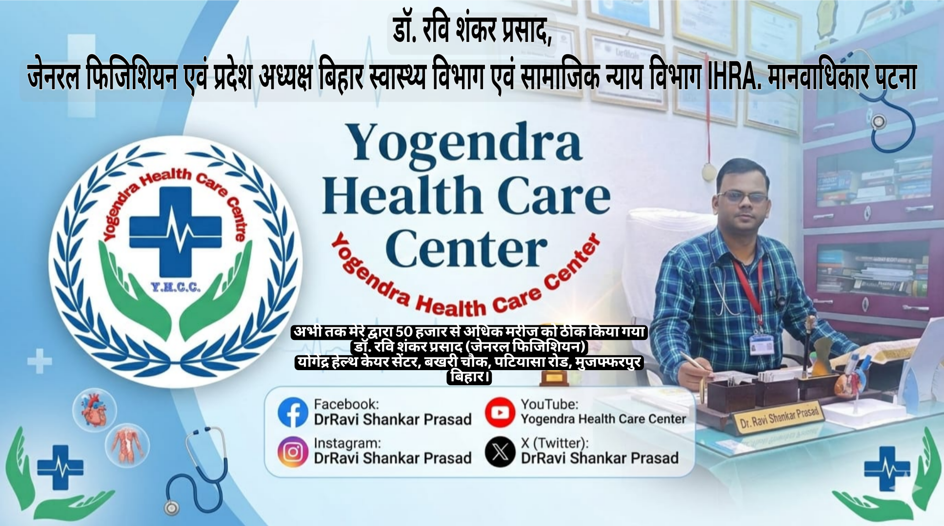 डॉ. रवि शंकर प्रसाद जेनरल फिजिशियन योगेंद्र हेल्थ केयर सेंटर, बखरी चौक, पटियासा रोड, मुजफ्फरपुर बिहार।