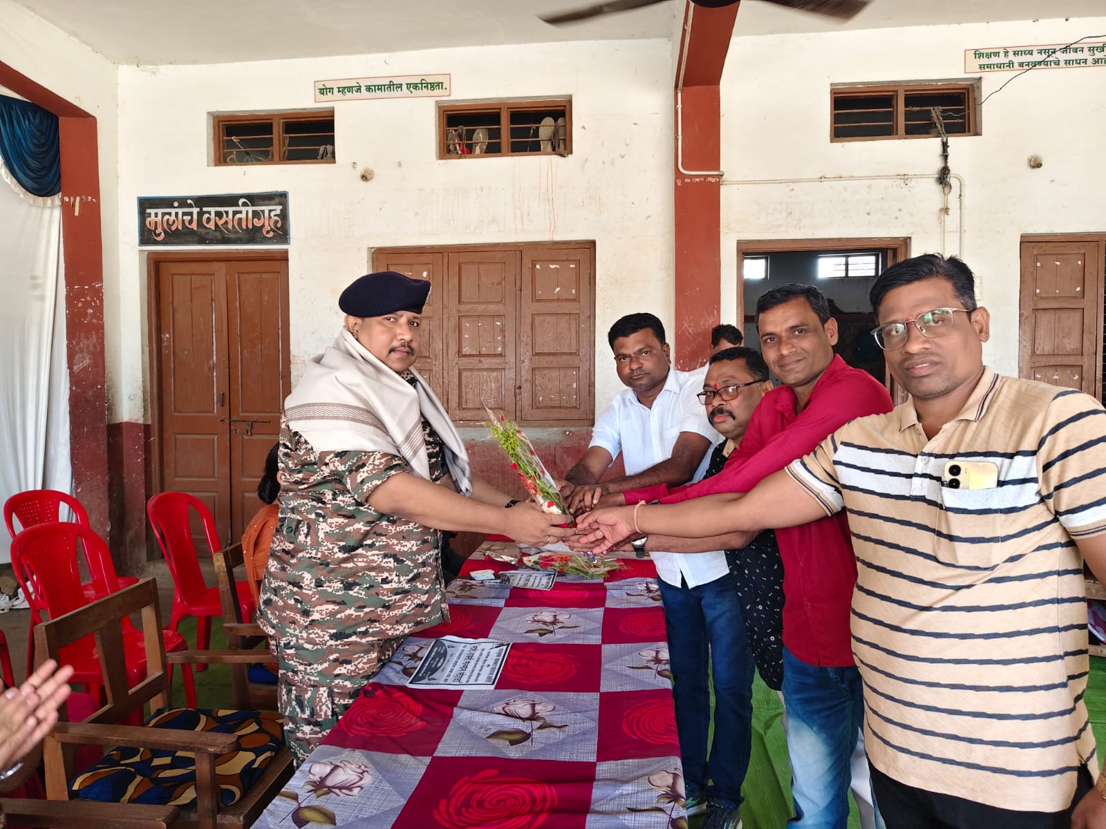 मंचावर बटालियनचे उपकमांडंट चंद्रमोरे अनिल, मेजर तायडे, पत्रकार संघटनेचे अध्यक्ष ऋषी सुखदेवे, शाळेचे प्रभारी मुख्याध्यापक भरतकर उपस्थित होते.