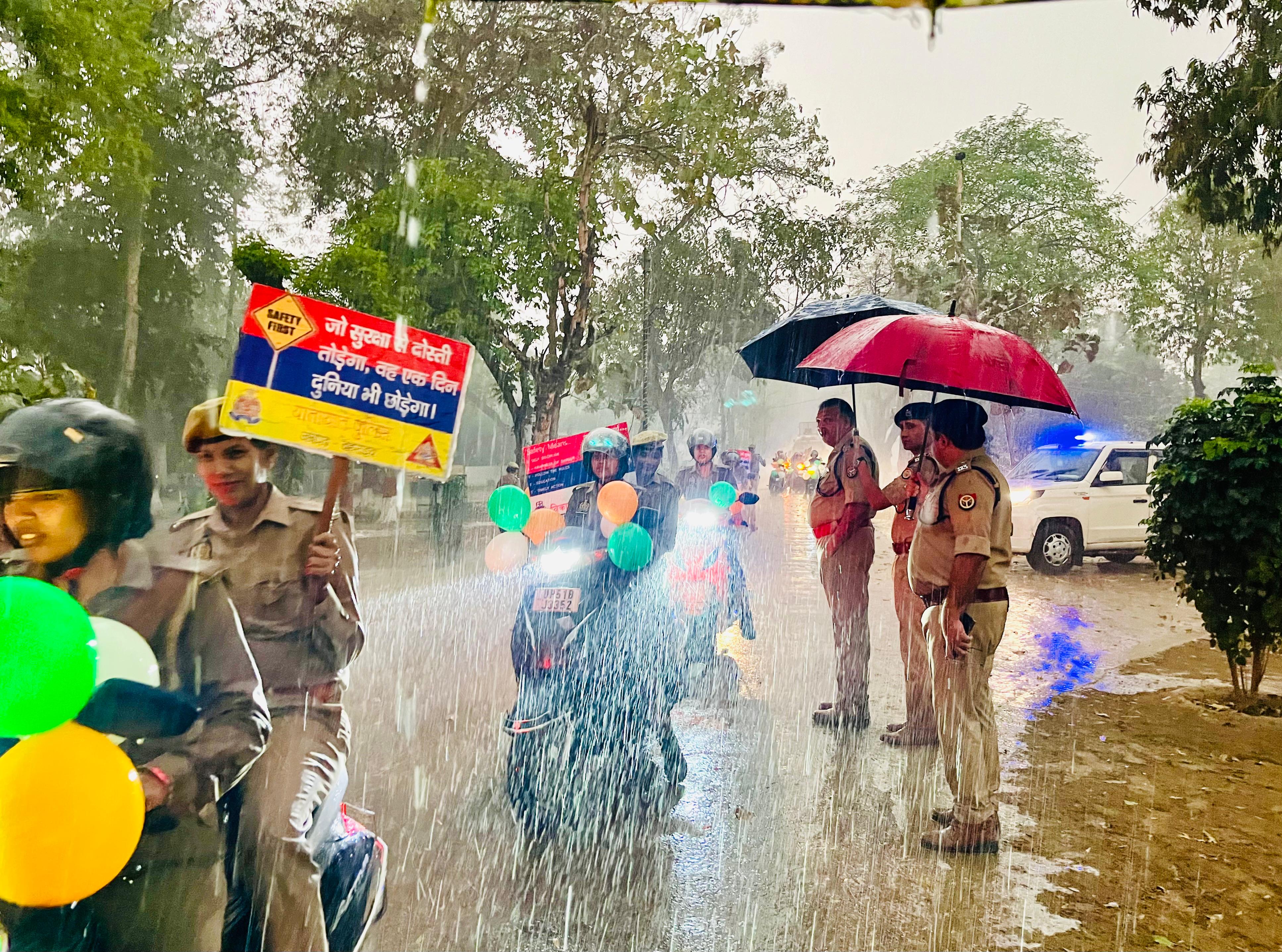 विशेष रूप से उल्लेखनीय है कि प्रतिकूल मौसम (वर्षा) के बावजूद पुलिस बल का उत्साह एवं समर्पण देखने योग्य रहा। कार्यक्रम के दौरान महिला अधिकारी द्वारा हरी झण्डी दिखाकर रैली को रवाना किया गया, जो महिला सशक्तिकरण के प्रतीक के रूप में भी परिलक्षित हुआ।