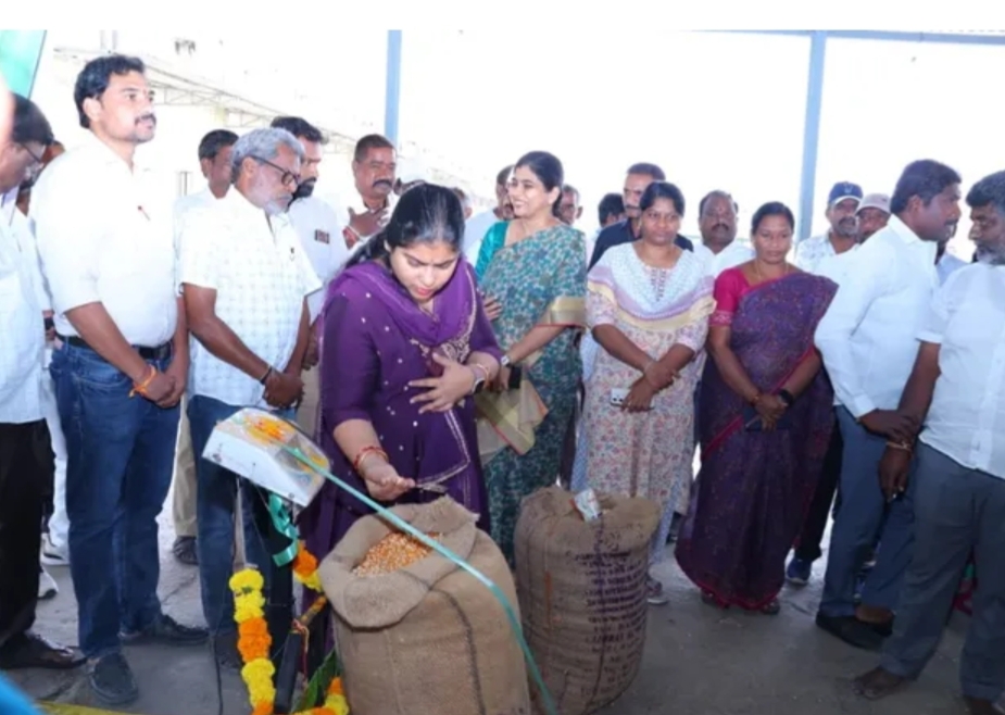 మక్కల కొనుగోలు కేంద్రాన్ని ప్రారంభించిన కలెక్టర్