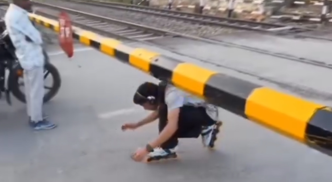 बंद फाटक के नीचे से स्केटिंग कर पार कर गया नाबालिग, वीडियो वायरल; जीआरपी ने पिता को दी चेतावनी