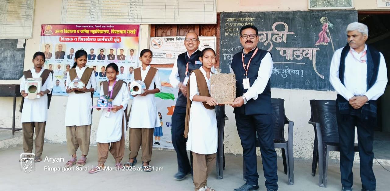 उपक्रमशीलतेसाठी ओळखल्या जाणाऱ्या जनता विद्यालय, पिंपळगाव सराई येथे इको क्लबच्या वतीने जागतिक चिमणी दिन विविध उपक्रमांनी उत्साहात साजरा करण्यात आला. कार्यक्रमाच्या अध्यक्षस्थानी विद्यालयाचे प्राचार्य प्रमोद ठोंबरे होते. प्रमुख अतिथी म्हणून पर्यवेक्षक संजय पिवटे उपस्थित होते, तर ज्येष्ठ शिक्षक रवींद्र खानंदे यांनी प्रमुख मार्गदर्शक म्हणून विद्यार्थ्यांना मार्गदर्शन केले.
