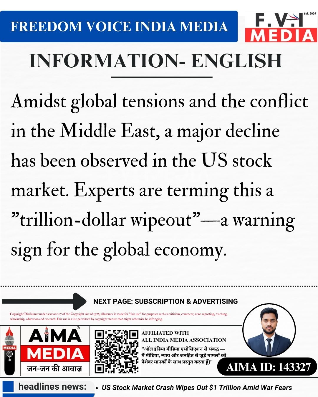 US Stock Market Crash Wipes Out $1 Trillion Amid War Fears