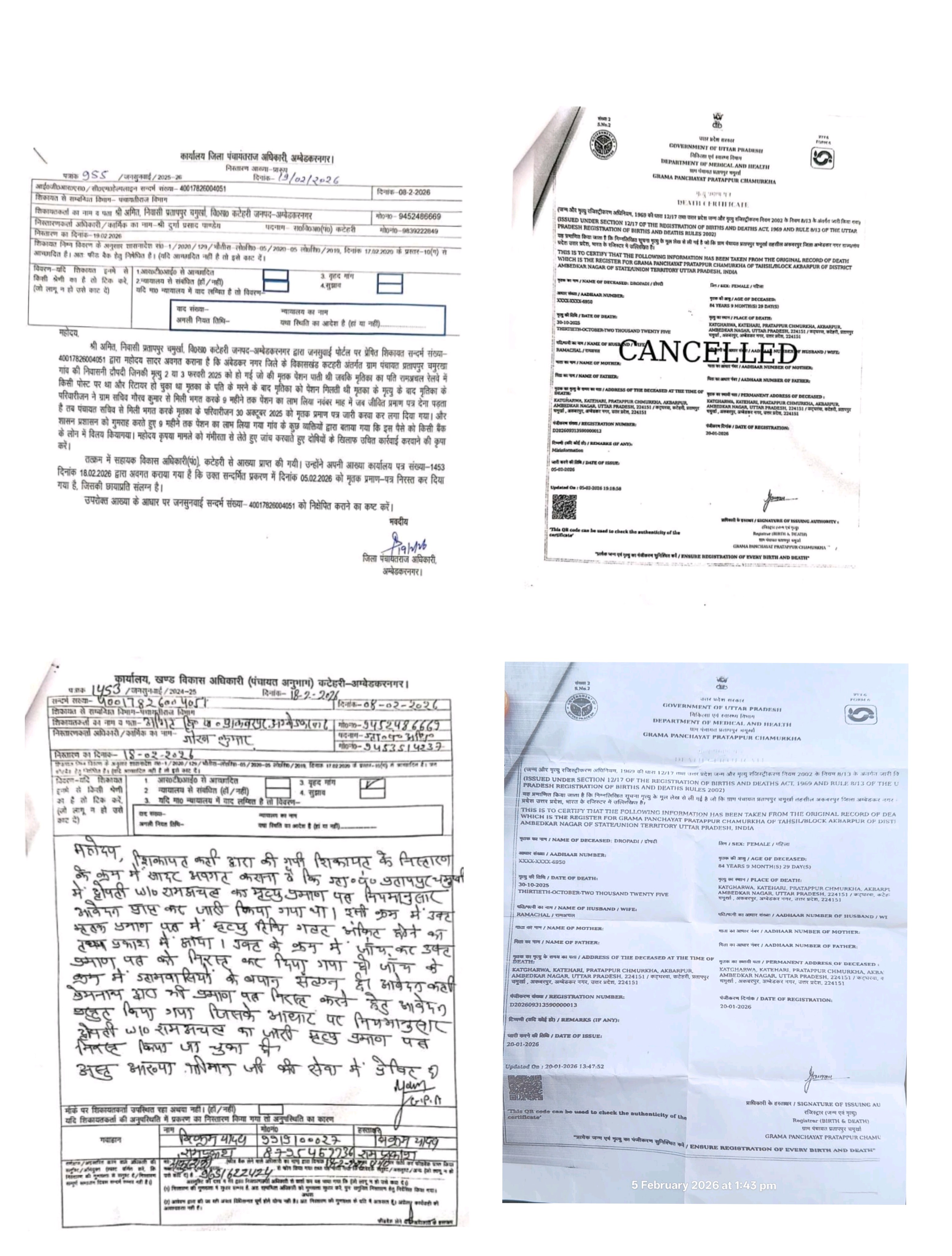 कटेहरी विकासखंड अंतर्गत ग्राम पंचायत प्रतापपुर चमुर्खा में वृद्धावस्था पेंशन योजना में बड़ा खेल सामने आया है। हैरान करने वाली बात यह है कि ग्राम निवासी द्रोपदी की फरवरी 2025 में मृत्यु होने के बावजूद उनके नाम पर करीब 9 महीने तक पेंशन का भुगतान होता रहा।