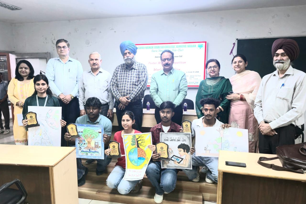 Aima Media , Yamunanagar ( Haryana) 21/03/26: Guru Nanak Khalsa College celebrated World Water Day with great enthusiasm by organizing a poster-making competition under the aegis of the Guru Har Rai Ji Eco-Club in collaboration with IQAC. The event was based on the theme “Save Water, Save Life” and witnessed active participation from around 40 teams representing various departments.