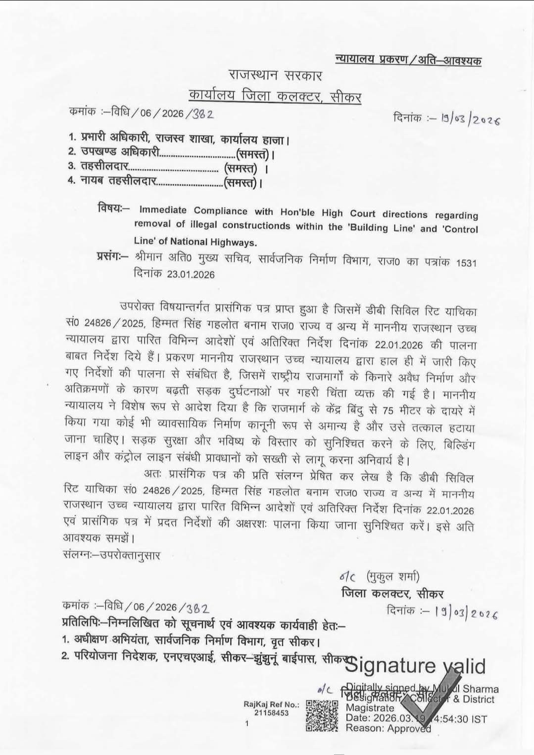 बायपास, स्टेट हाइवे, नेशनल हाईवे पर जमीन है तो सम्भल जाइए। सीकर में आदेश हो चुके है, प्रक्रिया जारी है। खरीद भी करो तो सोच समझकर वरना हाईवे पर खरीदी जमीन पछतावा भी दे सकती है।