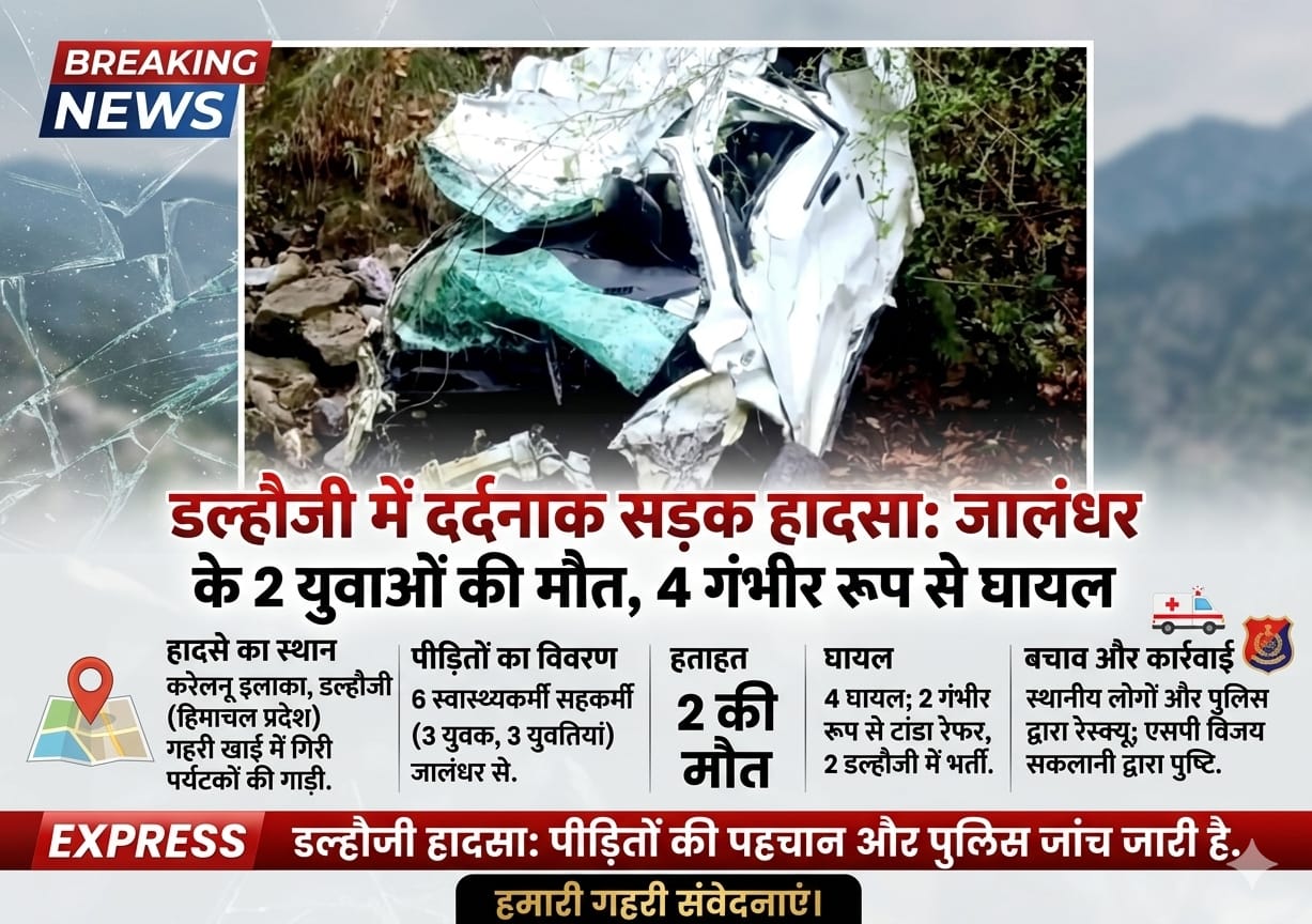Chamba Himachal Pradesh भयानक सड़क हादसा: डल्हौजी में जालंधर के पर्यटकों की गाड़ी खाई में गिरी जालंधर के 2 युवाओं की मौत, 4 गंभीर रूप से घायल