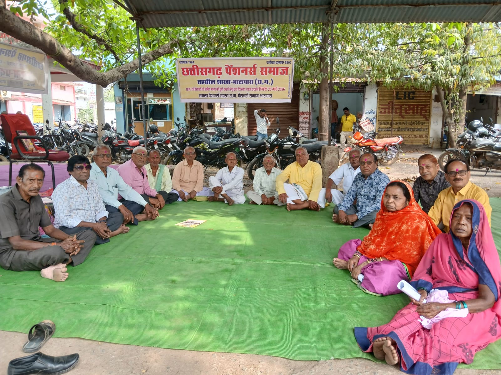 भाटापारा -छत्तीसगढ़ पेंशनर्स समाज तहसील शाखा भाटापारा के सदस्यों पदाधिकारियों ने शुक्रवार को जनपद कार्यालय के सामने अपनी 5 सूत्रीय मांगो को लेकर धरना प्रदर्शन किया | इस अवसर पर अध्यक्ष एस के डे ने अपने उद्बोधन मे सरकार से पेंशनरों की बहुप्रतिक्षित मांग को शीघ्र पूरा करने का आग्रह किया |संरक्षक सदस्य एस एल पंसारी पूर्व अध्यक्ष रंगी लाल रावत, रामलोचन शर्मा, उपाध्यक्ष लहाराम साहू, सचिव गोवर्धन साहू, कोषाध्यक्ष लक्ष्मी प्रसाद वर्मा, राममंनोहर वर्मा, प्रीत राम साहू, बी आर ध्रुव, श्रीमती चन्द्रिका यादव, श्रीमती रामदुलारी मानिकपुरी, गत्तू राम मैहर, सुभाष बघेल, लखन वर्मा सहित अनेक सदस्य धरना स्थल पर उपस्थित रहे |धरना प्रदर्शन उपरांत सभी पदाधिकारियों सहित सी एम के नाम अनुविभागीय अधिकारी राजस्व को ज्ञापन सौंपा |
