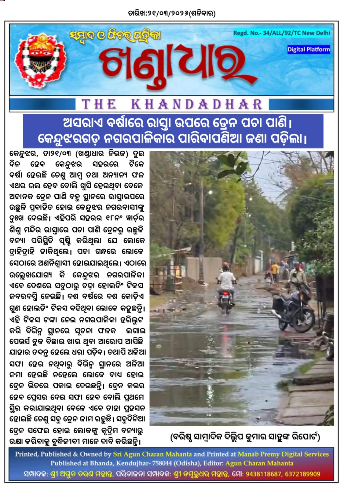 ଖଣ୍ଡାଧାର ନିଉଜ- ବରିଷ୍ଠ ସାମ୍ବାଦିକ ଦିଲ୍ଲିପ କୁମାର ସାହୁଙ୍କ ରିପୋର୍ଟ।