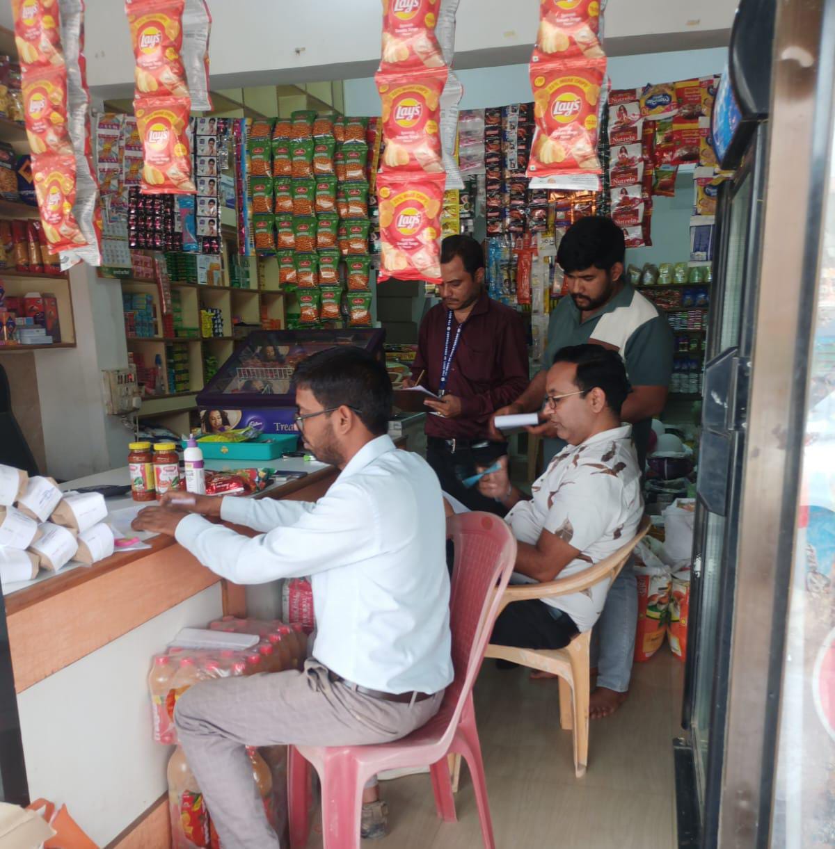 खाद्य दल ने बिना फ़ूड रजिस्ट्रेशन के कारोबारकर्ता को नोटिस दिया। साथ ही दाल, अचार और मसाले का नमूना लिया। खाद्य एवं औषधि प्रशासन विभाग के द्वारा अपील की गई कि खाद्य पदार्थों को जांच परख कर ही खरीदें। खाद्य अधिकारियों ने व्यापारियों को समझाईस दी कि बिना उचित खाद्य लाइसेंस के खाद्य कारोबार न करें और खरीदी बिक्री उचित बिल रसीद के साथ ही कारोबार करें। विभाग की ओर से अभिहित अधिकारी भारत भूषण पटेल, खाद्य सुरक्षा अधिकारी शांतनु भट्टाचार्य और वरुण पटेल शामिल थे।