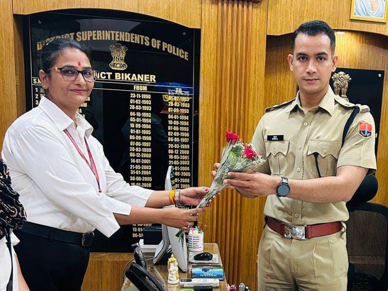 बीकानेर पुलिस अधीक्षक के पद पर मृदुल कच्छावा ने हाल ही अपना कार्यभार संभाला है वह नागौर से स्थानांतरण होकर बीकानेर अपने मूल निवास क्षेत्र में पद स्थापन हुए हैं। बीकानेर कार्यभार ग्रहण करने की पक्ष विभिन्न सामाजिक संगठनों के पदाधिकारी द्वारा उनका स्वागत अभिनंदन और शुभकामनाएं प्रेषित की जा रही है। मानव अधिकार सामाजिक कल्याण संघ बीकानेर की महिला उत्थान और उनके संघर्ष के लिए अग्रणी संस्था मानवाधिकार संस्था की संस्थापक उषा कंवर और उनकी समस्त टीम द्वारा आज पुलिस अधीक्षक मृदुल कच्छावा से शिष्टाचार भेंट कर बीकानेर पुलिस अधीक्षक पद पर कार्य ग्रहण करने की शुभकामनाएं एवं बधाई दी गई। इस दौरान संगठन की समस्त टीम प्रतिनिधित्व भी साथ रही।