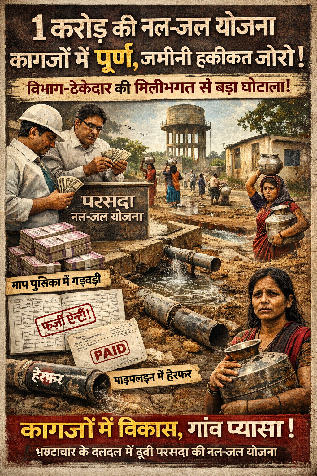 माप पुस्तिका में हेरफेर, पाइपलाइन में घोटाला – परसदा योजना जांच के घेरे में! भ्रष्टाचार की जड़ तक पहुंचेगा मामला? नल-जल योजना बना घोटाले का अड्डा!