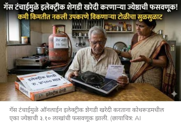 March 21, 2026 11:05पुणे : गॅस टंचाईची झळ सामान्यांना बसली आहे. गॅस टंचाईमुळे ऑनलाइन इलेक्ट्रीक शेगडी खरेदी करणाऱ्या एका ज्येष्ठ नागरिकाची सायबर चोरट्यांनी तीन लाख दहा हजार रुपयांची फसवणूक केल्याचा प्रकार उघडकीस आला. या प्रकरणी कोथरूड पोलिसांनी सायबर चोरट्यांविरुद्ध गुन्हा दाखल केला आहे.याबाबत एका ज्येष्ठ नागरिकाने कोथरूड पोलीस ठाण्यात फिर्याद दिली आहे. त्यांनी दिलेल्या फिर्यादीनुसार, सायबर चोरट्यांविरुद्ध गुन्हा दाखल करण्यात आला आहे. पोलिसांनी दिलेल्या फिर्यादीनुसार, तक्रारदार ज्येष्ठ नागरिक हे कोथरूड भागात राहायला आहेत. त्यांनी समाज माध्यमात इलेक्ट्रीक शेगडीची जाहिरात पाहिली होती. गॅस टंचाईमुळे त्यांनी शेगडी खरेदी करण्याचे निश्चित केले. त्यानंतर त्यांनी जाहिरातीतील मोबाइल क्रमांकावर संपर्क साधला. सायबर चोरट्यांनी शेगडी खरेदीचे पैसे ऑनलाइन पद्धतीने जमा करावे लागतील, असे त्यांना सांगितले. त्यानंतर चोरट्यांनी त्यांच्या बँक खात्याची माहिती घेतली.