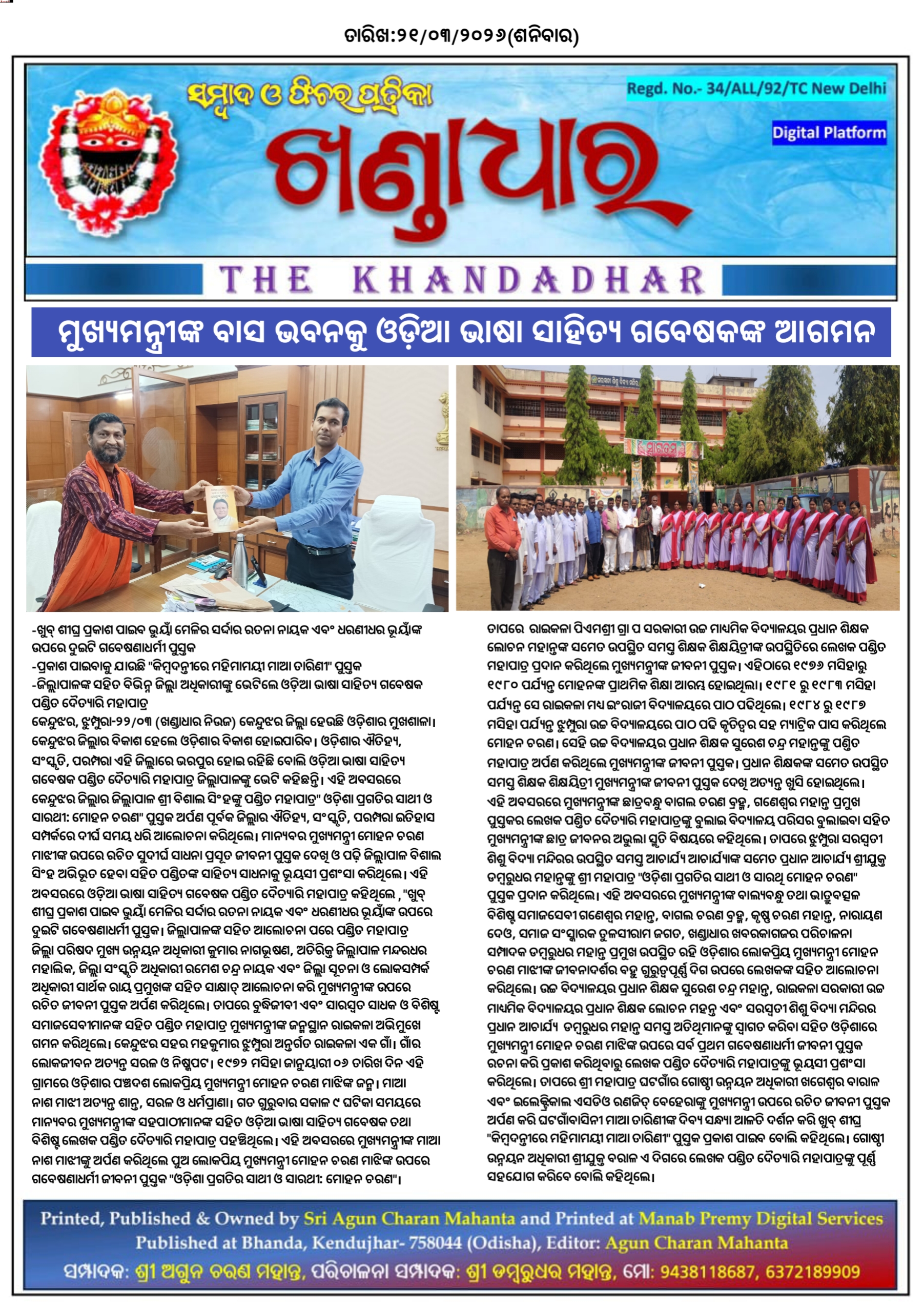 ଡମ୍ବରୁଧର ମହାନ୍ତ ଙ୍କ ରିପୋର୍ଟ।