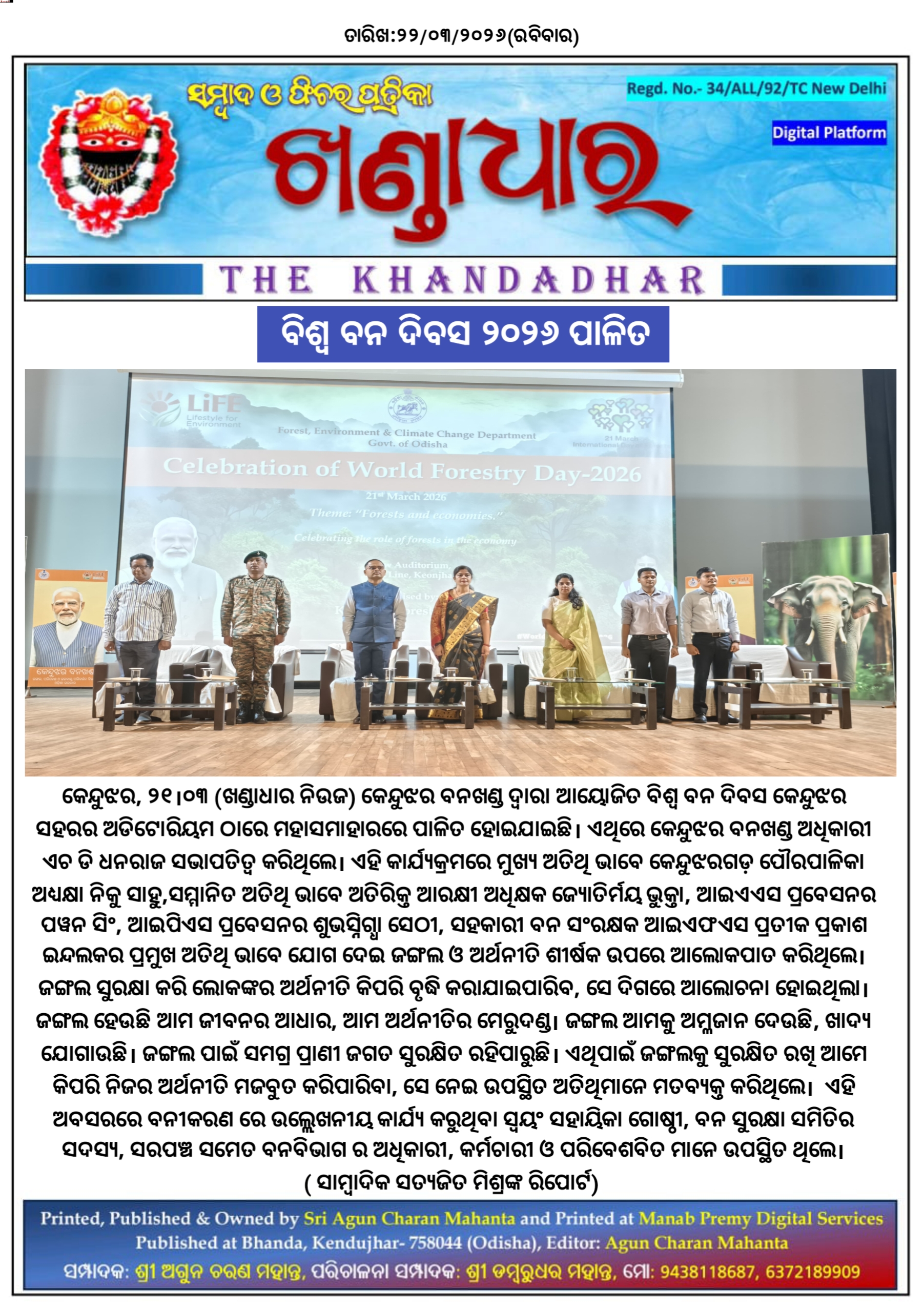 ବିଶ୍ୱ ବନ ଦିବସ ୨୦୨୬ ପାଳିତ।
