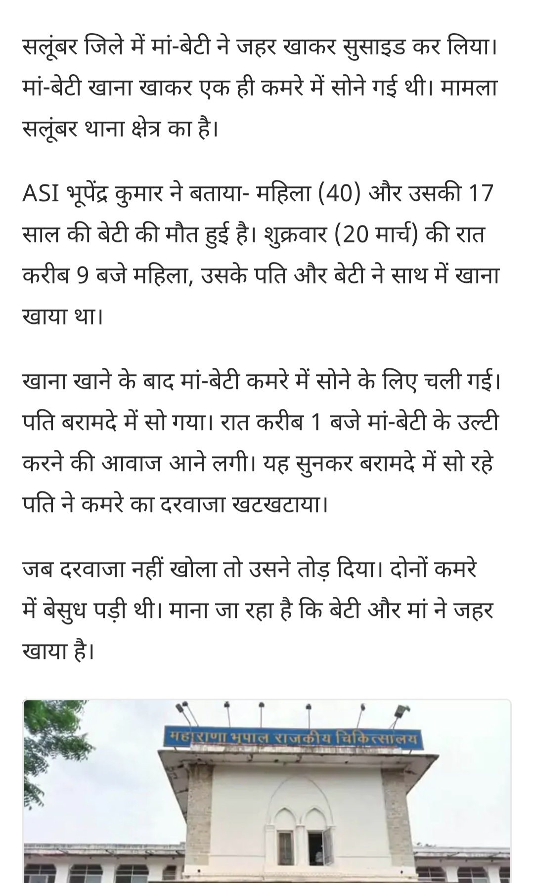 मां-बेटी ने जहर खाकर किया सुसाइड: खाना खाने के बाद कमरे में सोने गई, उल्टी करने की आवाज सुनकर पति ने तोडा गेट