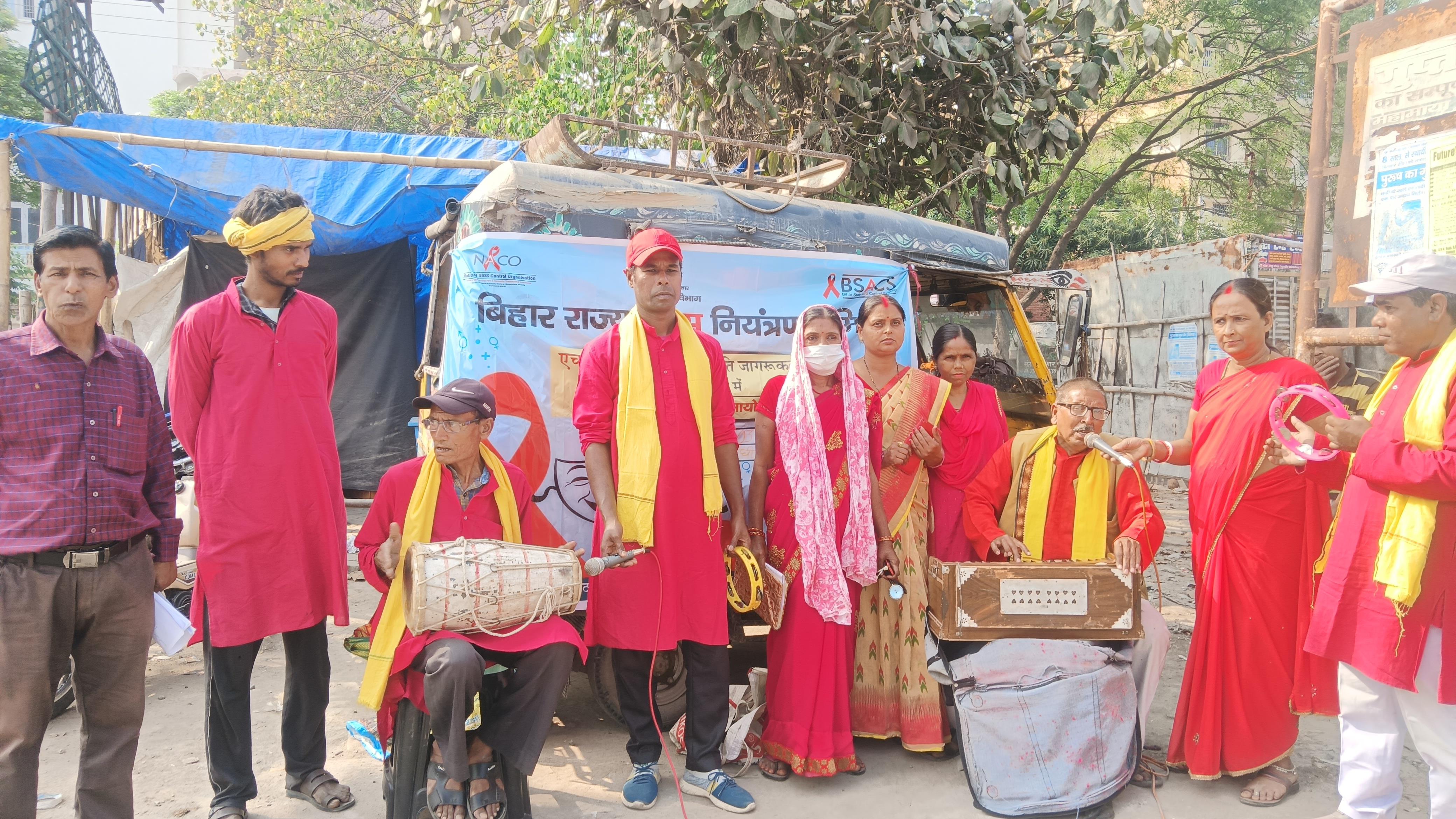 वैशाली जिले में कलाकारों द्वारा एचआईवी एड्स जागरूकता फैलाया गया।