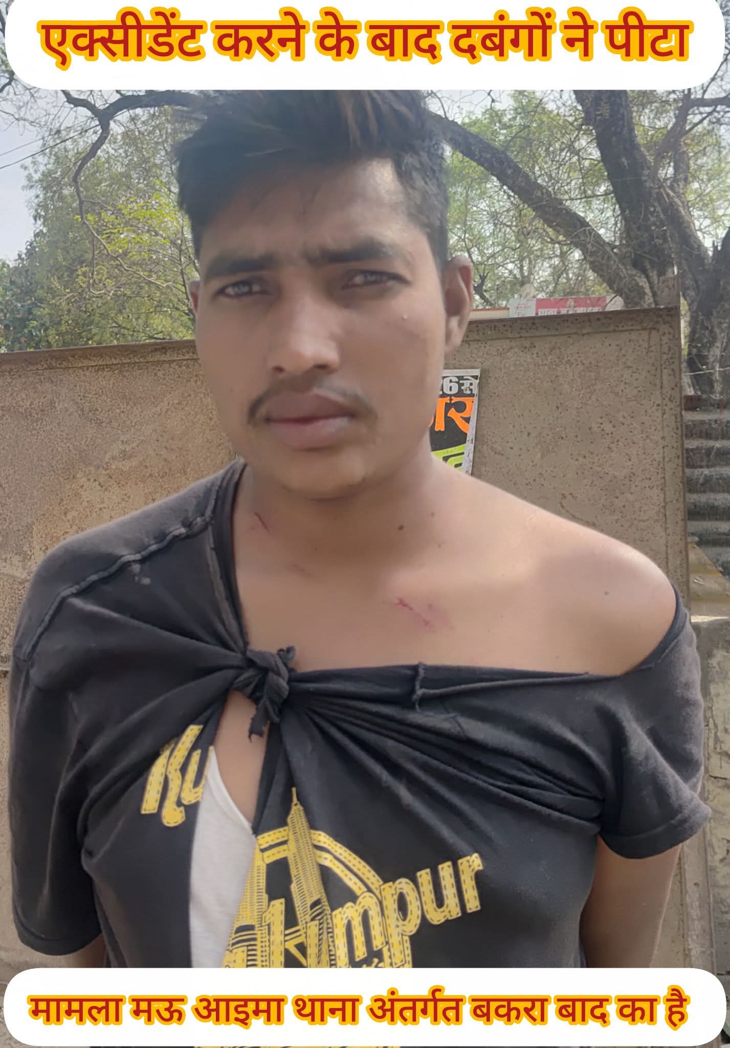 प्रयागराज । मऊ आइमा थाना अंतर्गत ग्राम सभा बकरा बाद के रहने वाले विपिन कुमार सरोज का आरोप है कि आज दिनांक 21. 3.26 को समय लगभग 12:00 बजे मेरी भतीजी नीतू सरोज राजेतारा चौराहे पर कुछ सामान खरीदने जा रही थी जैसे ही बंगाली क्लीनिक के पास पहुंची थी की उधर से आ रही स्प्लेंडर जिसका नंबर U.P. 70 H.B. 6385 तेज रफ्तार से आ रही बाइक ने जोरदार टक्कर मार दी जिससे प्रार्थी की भतीजी को बहुत गहरी चोटेआई हैं और जिस साइकिल से जा रही थी वह साइकिल भी टूट गई इसके उपरांत जी मोटरसाइकिल से एक्सीडेंट हुआ था उसका नाम अरमान का बड़ा भाई आया है उसने हमारे साथ मारपीट भी किया और जाति सूचक गालियां भी दी उसके बाद प्रार्थी ने 112 पर फोन किया और मौके पर पहुंची 112 की पुलिस के सामने उक्त विपक्षी ने जान से मारने की धमकी दी वह जाति सूचक शब्दों से भद्दी भद्दी गाली और गोली मारने की भी धमकी 112 नंबर के सामने दिया प्रार्थी ने तत्काल थाना मऊ आइमा में पहुंचकर लिखित प्रार्थना पत्र देते हुए कार्रवाई की मांग की है