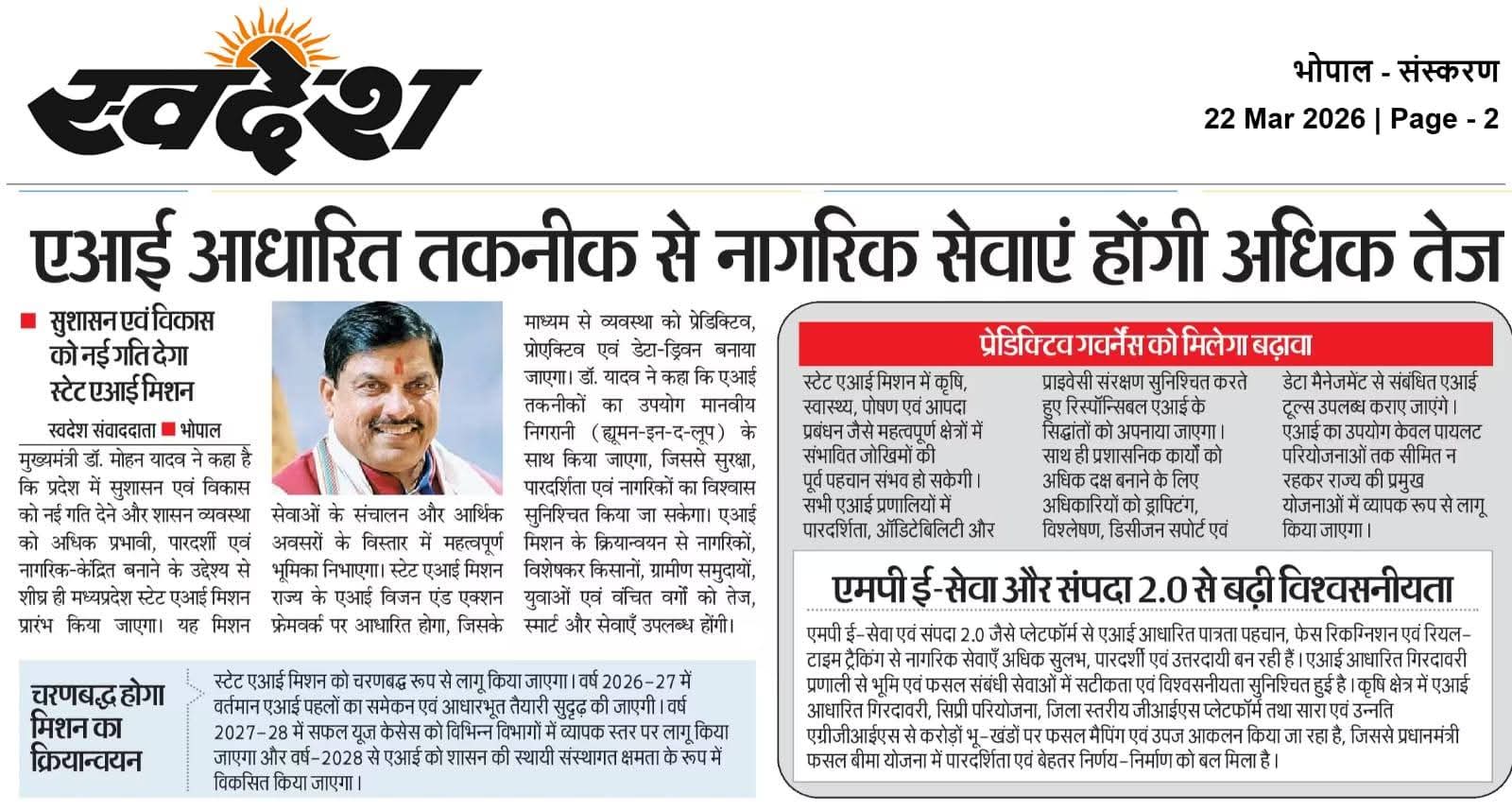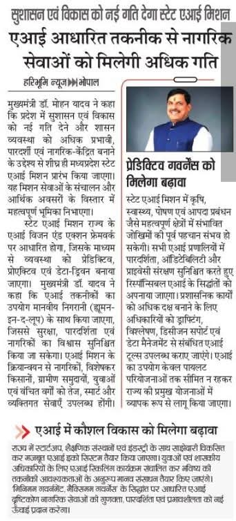 एआई आधारित तकनीक से नागरिक सेवाएं होंगी अधिक तेज, पारदर्शी एवं डेटा आधारित : मुख्यमंत्री डॉ. मोहन यादव
