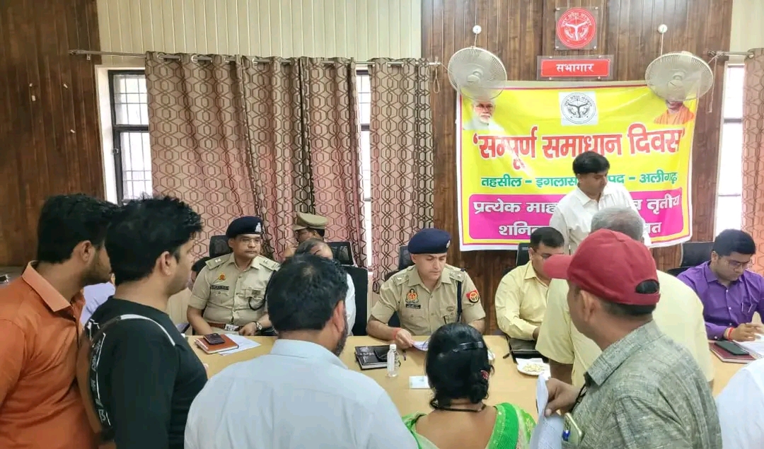 आज दिनांक 23.03.2026 को सम्पूर्ण समाधान दिवस के अवसर पर जिलाधिकारी व वरिष्ठ पुलिस अधीक्षक, अलीगढ़ द्वारा तहसील इगलास में उपस्थित हुए और आने वाले शिकायतकर्ताओं की समस्याओं को सुना गया सभी अधीनस्थों को गुणवत्तापूर्ण व समयबद्ध त्वरित निस्तारण हेतु आदेश-निर्देश दिये गये । मौके पर सभी पुलिस/प्रशासनिक अधि0/कर्म0गण मौजूद रहे ।