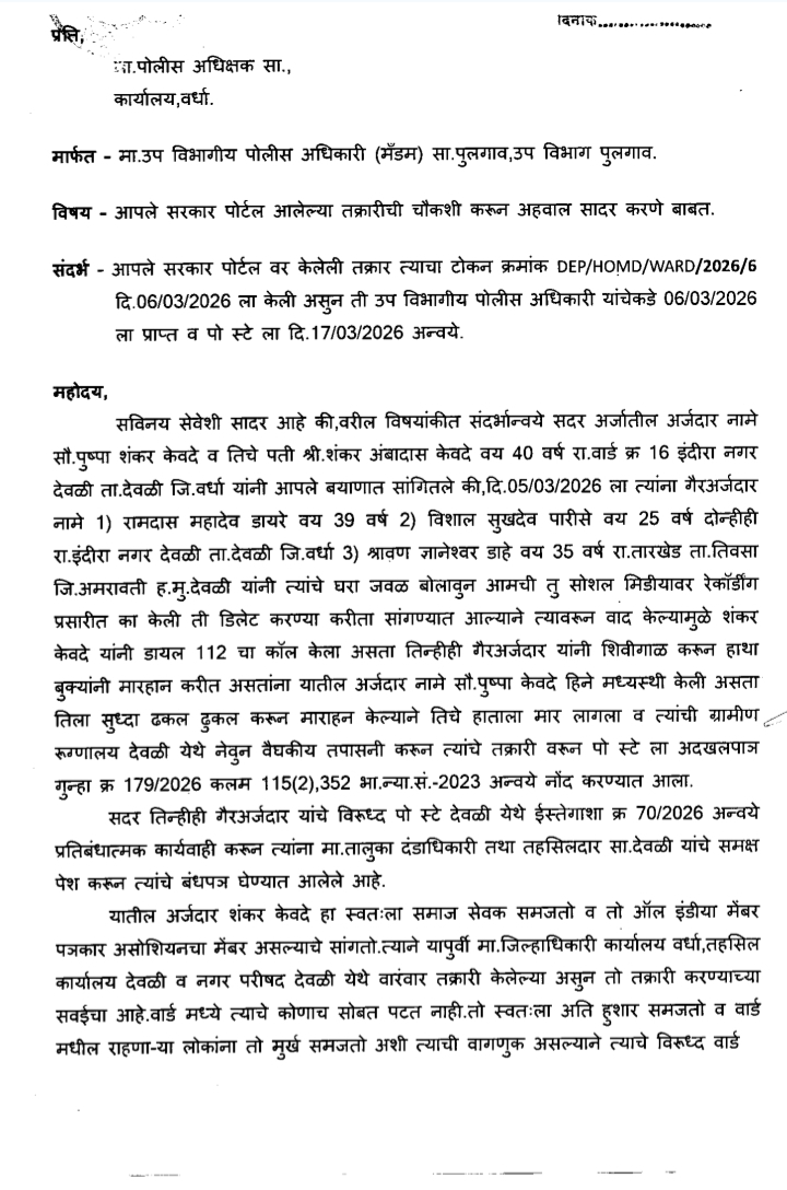 हेडलाइन: पोलीसांच्या भाडखाऊ वृत्तीमुळे चुकीच्या दस्तऐवजावर गुन्हा ठरवण्याचा प्रयत्न
