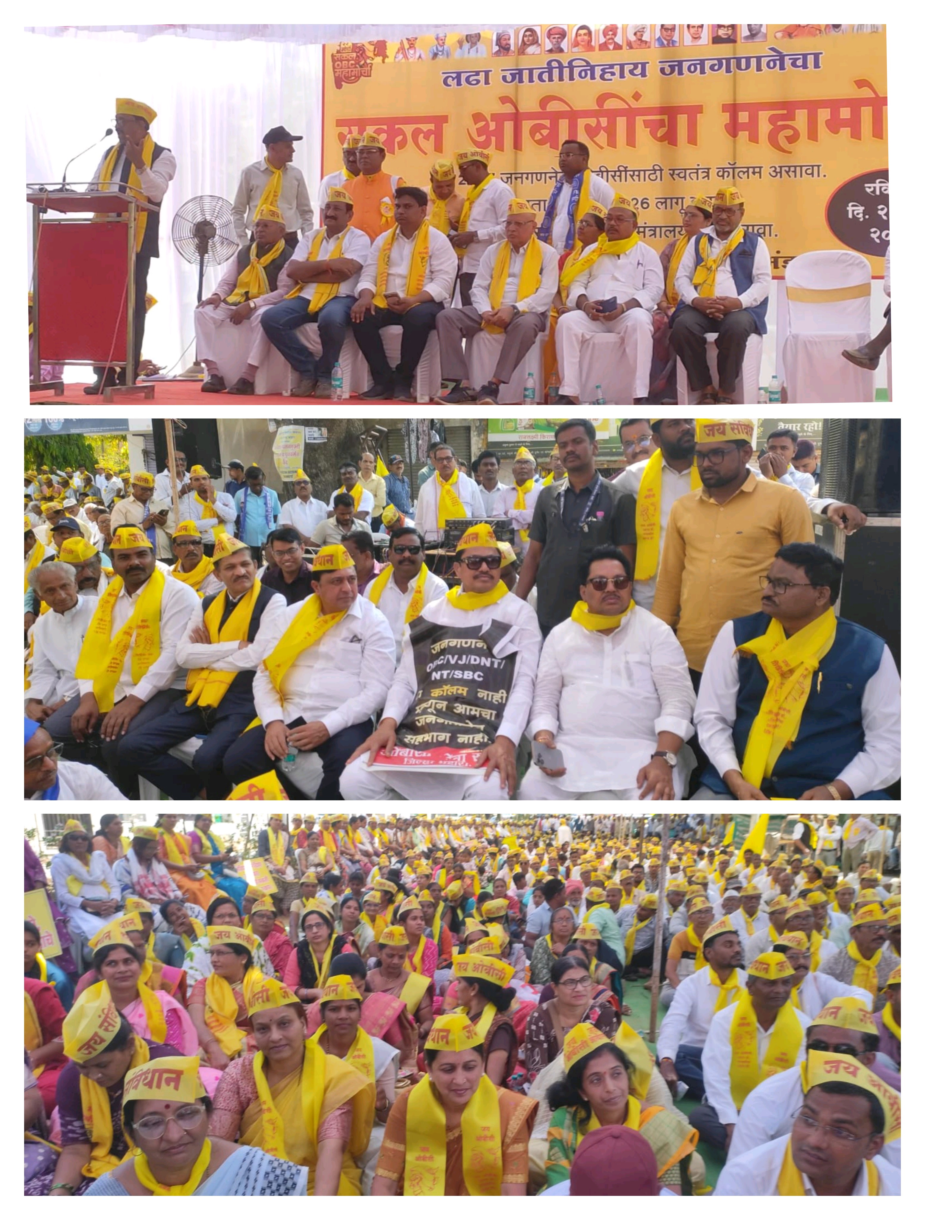 सर्व आंदोलनकर्त्यांनी पिवळ्या टोप्या आणि दुपट्टे परिधान केले होते. त्यामुळे संपूर्ण शहर पिवळ्या रंगात नााऊन निधाले होते. त्यात 'जय ओबीसी, जग संविधान' अशा घोषणांनी परिसर दणाणून गेला होता.