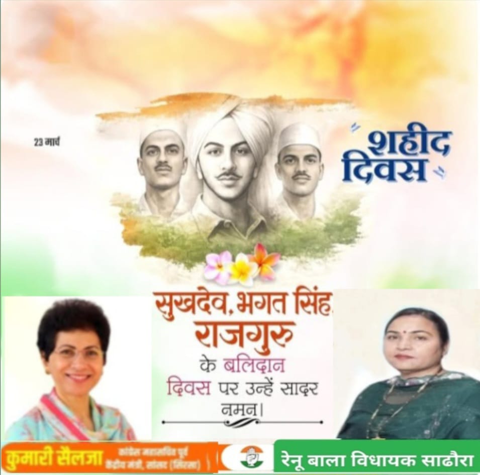 कपुरी :- हल्का सधौरा विधायक मैडम रेणु बाला जी नें सुखदेव, भगत सिंह और राजगुरु जी के बलिदान दिवस पर सादर नमन किया!