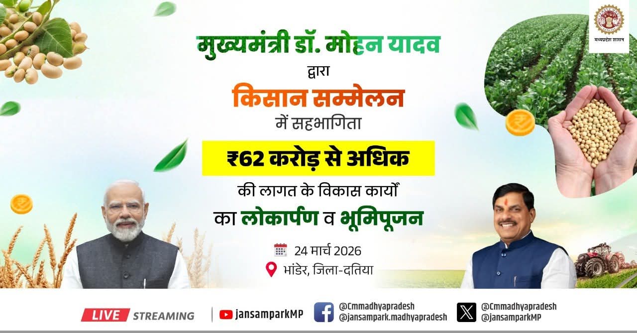 मुख्यमंत्री डॉ. मोहन यादव द्वारा किसान सम्मेलन में सहभागिता एवं ₹62 करोड़ से अधिक की लागत के विकास कार्यों का लोकार्पण व भूमिपूजन