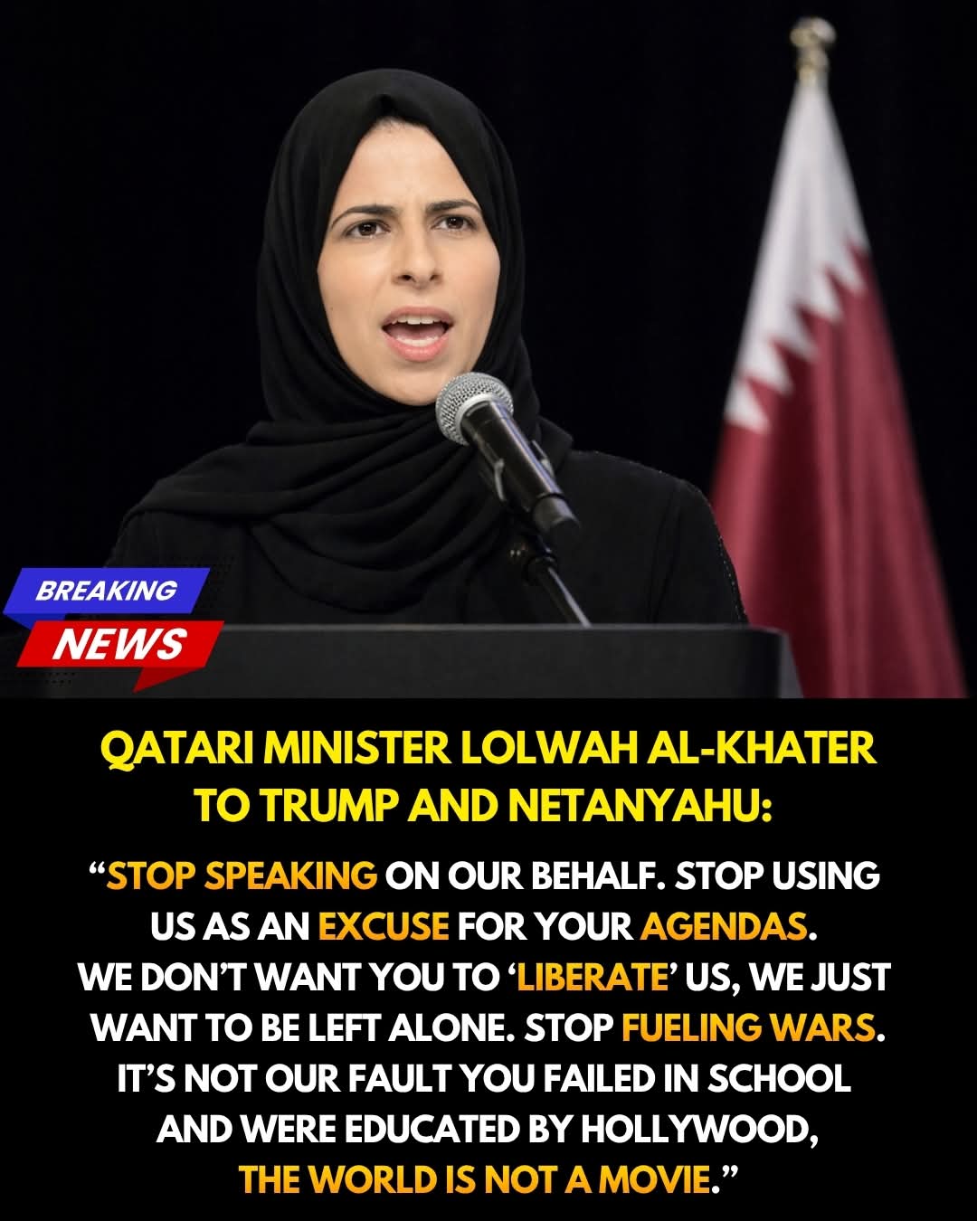Qatari Minister Lolwah Al-Khater delivered a sharp and unequivocal message to Donald Trump and Benjamin Netanyahu: