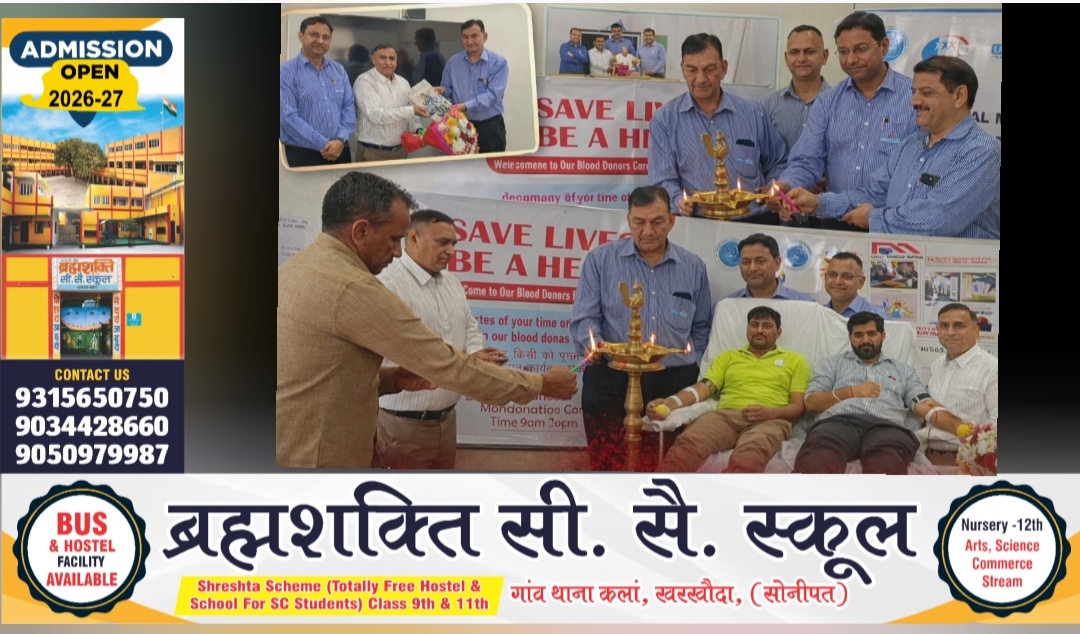 एक पहल, सैकड़ों हाथ-UNO MINDA के पहले रक्तदान शिविर में बना रिकॉर्ड- प्लांट हैड विनय दहिया युनो मिंडा IMT खरखौदा।