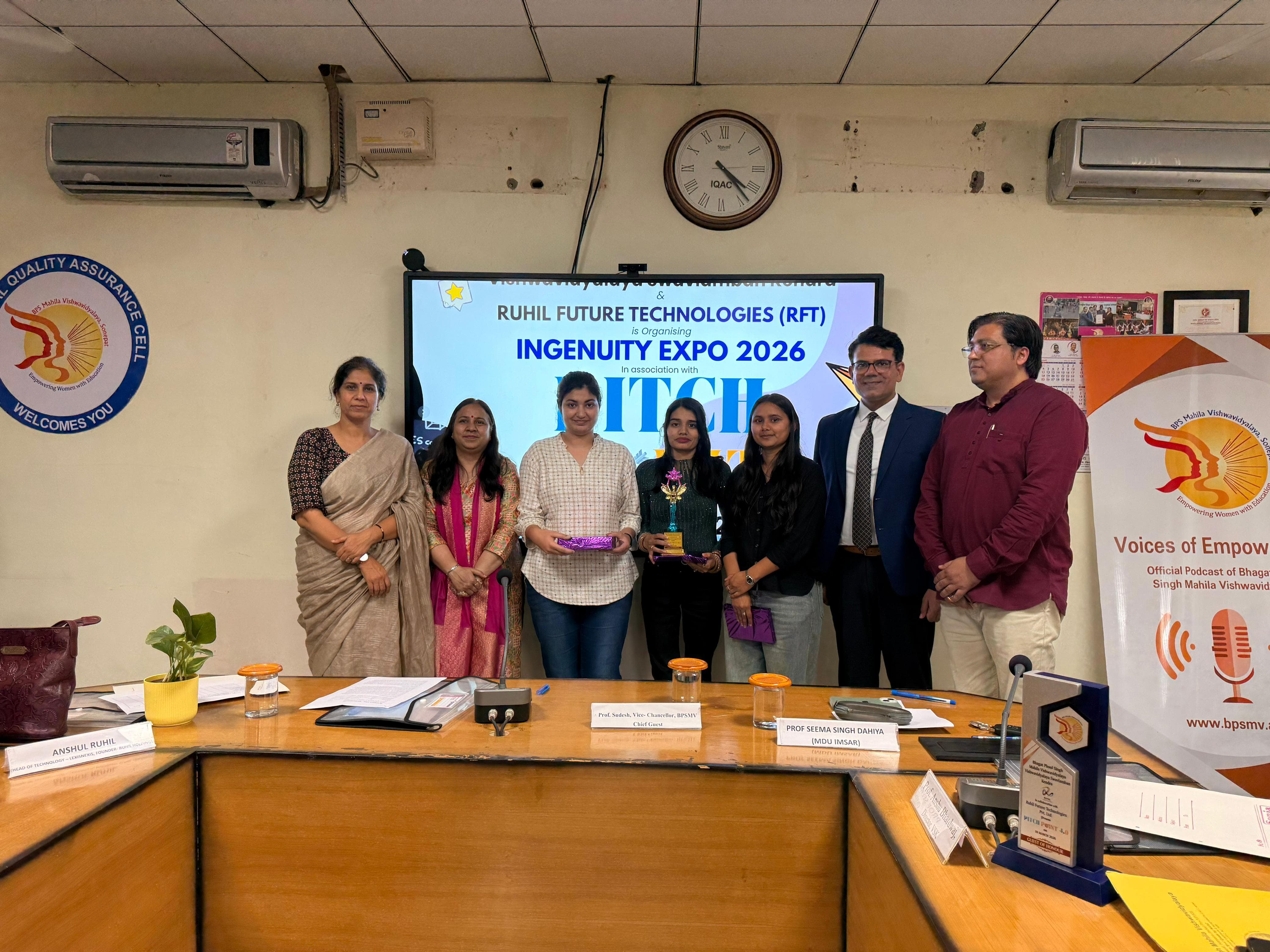 भगत फूल सिंह महिला विश्वविद्यालय , खानपुर कलां के शिक्षा विभाग ने एक बार फिर अपनी उत्कृष्टता का परचम लहराते हुए “इंजेन्यूटी एक्सपो 2026 (पिच 4.0)” में प्रथम स्थान प्राप्त कर विश्वविद्यालय का नाम रोशन किया है। यह कार्यक्रम रुहिल फ्यूचर टेक्नोलॉजीज के प्रयोजन में आयोजित किया गया।विजेता टीम ने “प्लेट टू पॉलिमर” शीर्षक से एक अभिनव परियोजना प्रस्तुत की, जिसमें प्लेट वेस्ट एवं जैव-अपघटनीय सामग्री को पॉलिमर आधारित विकल्पों में परिवर्तित करने का व्यावहारिक समाधान प्रस्तुत किया गया। यह परियोजना न केवल विश्वविद्यालय स्तर की समस्या का समाधान प्रस्तुत करती है, बल्कि वैश्विक पर्यावरणीय चुनौतियों के समाधान की दिशा में भी एक महत्वपूर्ण कदम है।इस परियोजना को शिक्षा विभाग की एम.एड. अंतिम वर्ष की छात्रा अंकिता , शोधार्थी वंदना एवं शोधार्थी तनीषा ने डॉ. सुशील कुमार के मार्गदर्शन में तैयार एवं प्रस्तुत किया। उल्लेखनीय है कि शिक्षा विभाग ने इस प्रतियोगिता में लगातार तीसरी बार प्रथम स्थान प्राप्त कर ‘हैट्रिक’ बनाई है। साथ ही, डॉ. सुशील कुमार पिछले तीन वर्षों से विजेता टीमों का मार्गदर्शन करते आ रहे हैं, जो उनकी शैक्षणिक नेतृत्व क्षमता, नवाचार और उत्कृष्टता के प्रति प्रतिबद्धता को दर्शाता है।शिक्षा संकाय की अधिष्ठाता प्रो. अनु बल्हारा एवं शिक्षा विभाग की अध्यक्ष प्रो. वरुणा तेहलान दहिया ने इस उपलब्धि पर डॉ. सुशील कुमार एवं टीम को बधाई देते हुए उनके नवाचार और वास्तविक समस्याओं के समाधान हेतु किए गए प्रयासों की सराहना की।यह कार्यक्रम विश्वविद्यालय स्वावलंबन केंद्र के तत्वावधान में प्रो. अंशु भारद्वाज (नोडल अधिकारी) के मार्गदर्शन में आयोजित किया गया, जिसमें छात्राओं को नवाचार, उद्यमिता एवं सतत विकास से जुड़े विचार प्रस्तुत करने के लिए एक सशक्त मंच प्रदान किया गया।इंजेन्यूटी एक्सपो 2026 में शिक्षा विभाग की यह सफलता विश्वविद्यालय की नवाचार आधारित शिक्षा, कौशल विकास और उद्यमिता को बढ़ावा देने की प्रतिबद्धता को दर्शाती है, जो राष्ट्रीय शिक्षा नीति 2020 एवं ‘आत्मनिर्भर भारत’ के विजन के अनुरूप है।फोटो कैप्शन :- 01 विजेता छात्राओं को सम्मानित करते आयोजक।